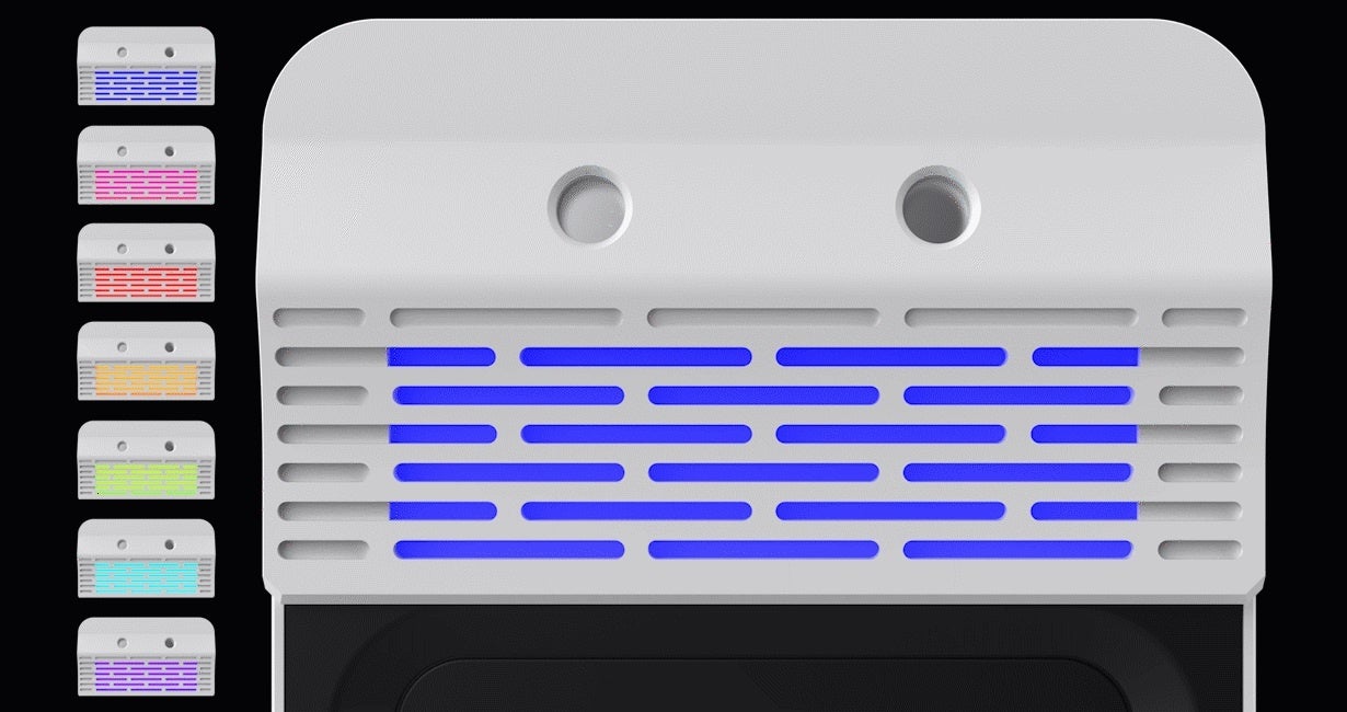 7色のLEDライト機能には、自動で色が変化するモードとお好みの色に固定できる2つのモードがあり、「LEDライト」ボタンを押すと切り替えることができます。