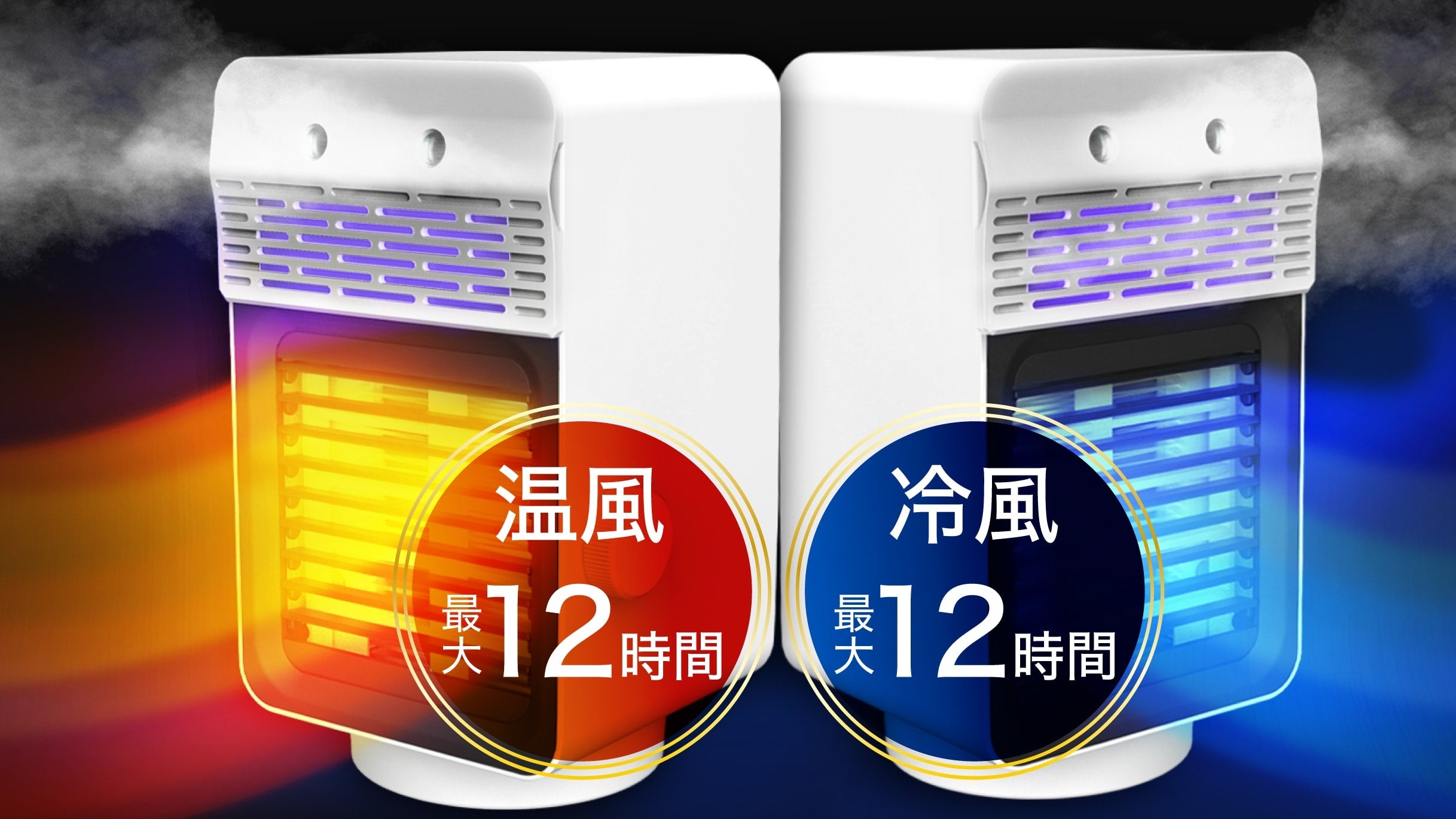 冷風はボタンの長押しで2段階まで風量を調節することができ、最大12時間使用することができます。