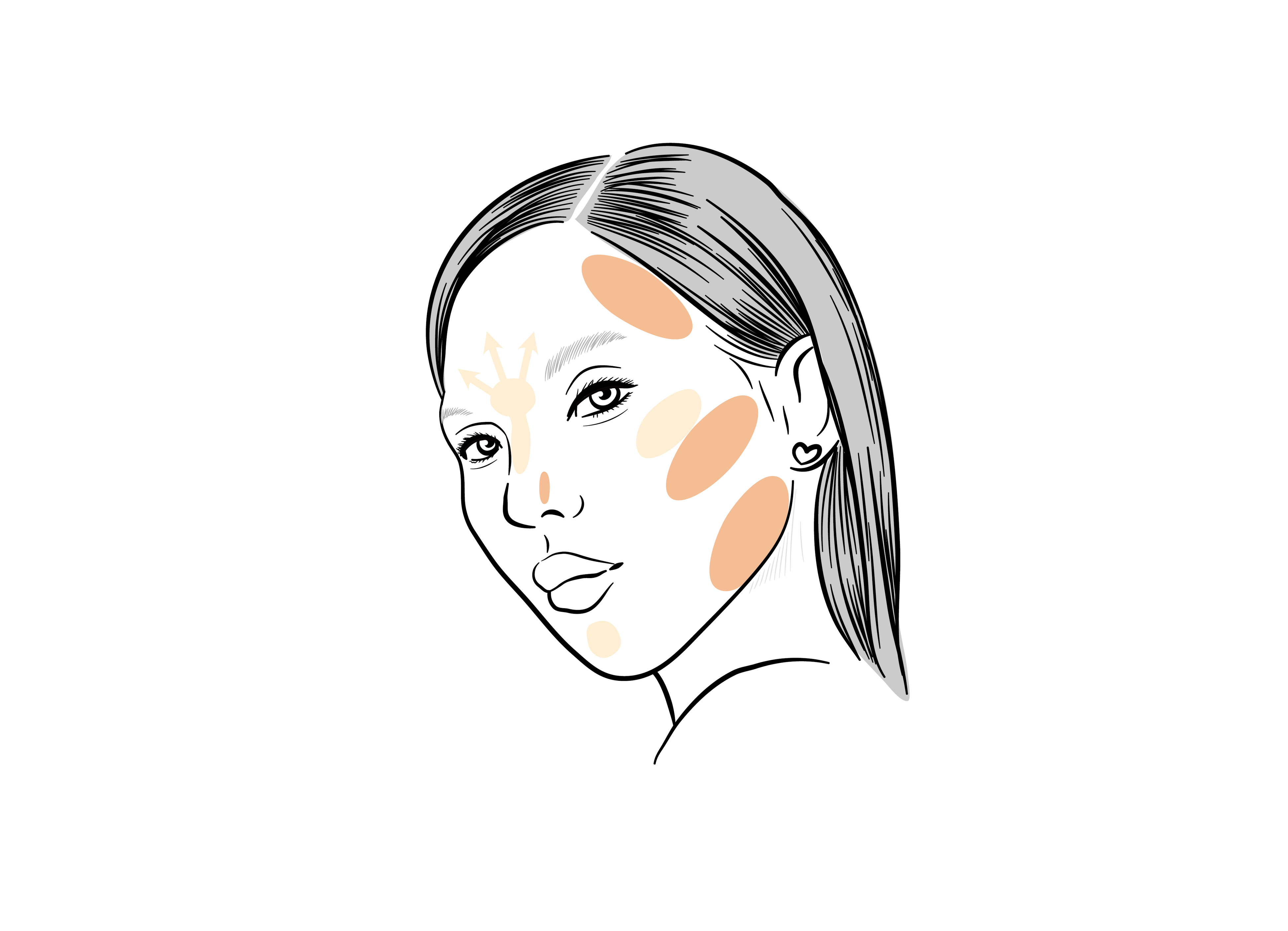 コントゥア デザイニング パウダーをコントゥア デザイニング ブラシやテクニカルブレンダーにとり、生え際・頬骨の下・フェイスラインに乗せてください。