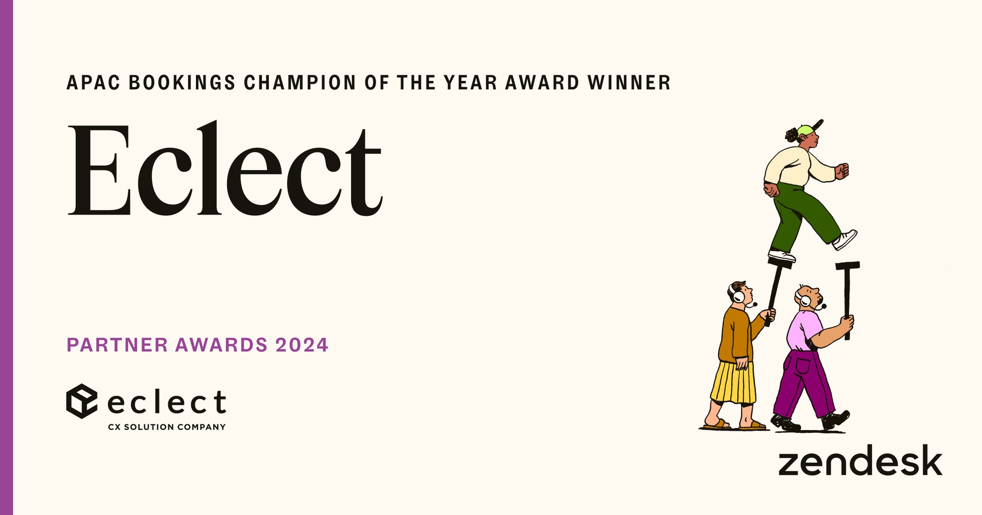 株式会社エクレクト(東京都世田谷区、代表取締役:辻本真大、以下エクレクト)は、世界10万社以上が導入するカスタマーサービスソフトウェア「Zendesk」のパートナー表彰式において、APACエリアトップである「Zendesk Bookings Champion of the Year」を受賞しました。本受賞は5年連続となり、これは全世界においてもエクレクトだけの快挙です。