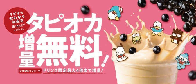 サンリオ「はぴだんぶい」× 台湾スイーツ・生タピオカ専門店「台湾甜商店」、今話題のコラボ商品に、新メニューが登場!タピオカ無料増量キャンペーンも開催!