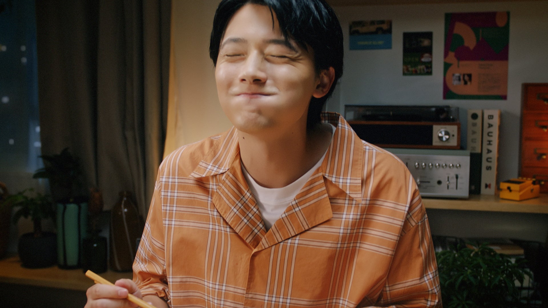 WebCMでは、深夜にお腹が空いた櫻井さんが、マルちゃん正麺のおすすめレシピ「甘醤油香る 豚こま炒め正麺」の“グッジョブポイント”を解説しながら本格的なおいしさを噛みしめる様子が描かれています。