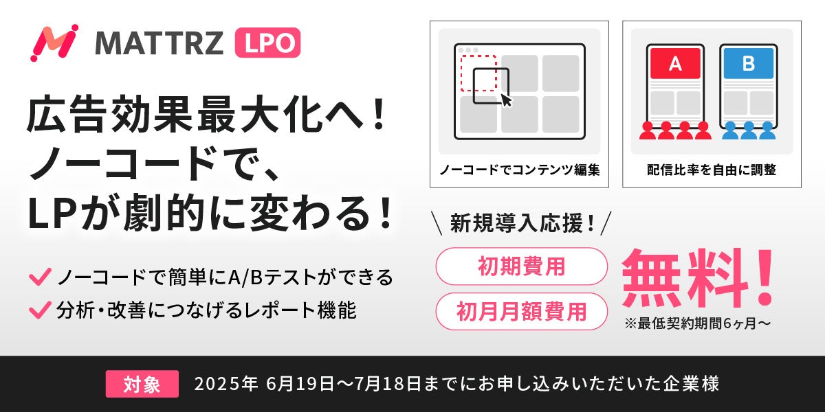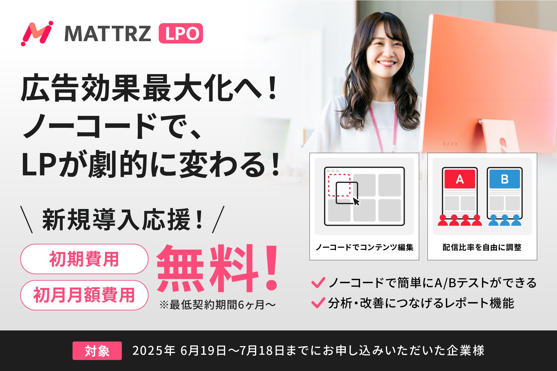【新サービス】ノーコードでLP最適化を実現する「MATTRZ LPO」を提供開始!初期費用・初月月額無料キャンペーン実施!