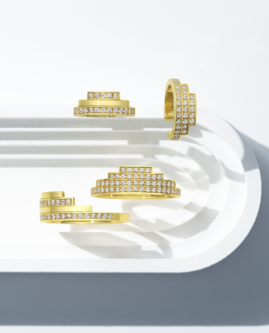 日本らしい精緻で繊細なクラフツマンシップ、クラリティの高いダイヤモンドや18Kイエローゴールドなどの上質な素材、身に纏った時の美しさを追求したファッションの感性が息づくデザインが特徴です。