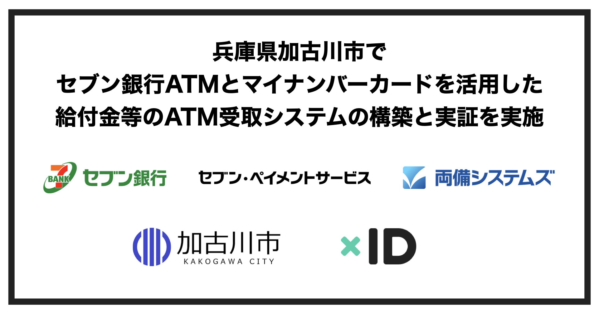兵庫県加古川市(市長 岡田康裕)と、株式会社セブン銀行(住所:東京都千代田区、代表取締役社長 舟竹泰昭)、株式会社セブン・ペイメントサービス(住所:東京都千代田区、代表取締役社長 和田 哲士)、xID株式会社(住所:東京都千代田区、CEO 日下光)、株式会社両備システムズ(住所:岡山県岡山市、代表取締役社長 松田敏之)は、セブン銀行ATMで住民が給付金等の受け取りを安全かつ速やかに行えるシステムの構築と、関連する周辺環境の整備、本仕組みの本格導入に向けた実証を2022年7月頃行います。