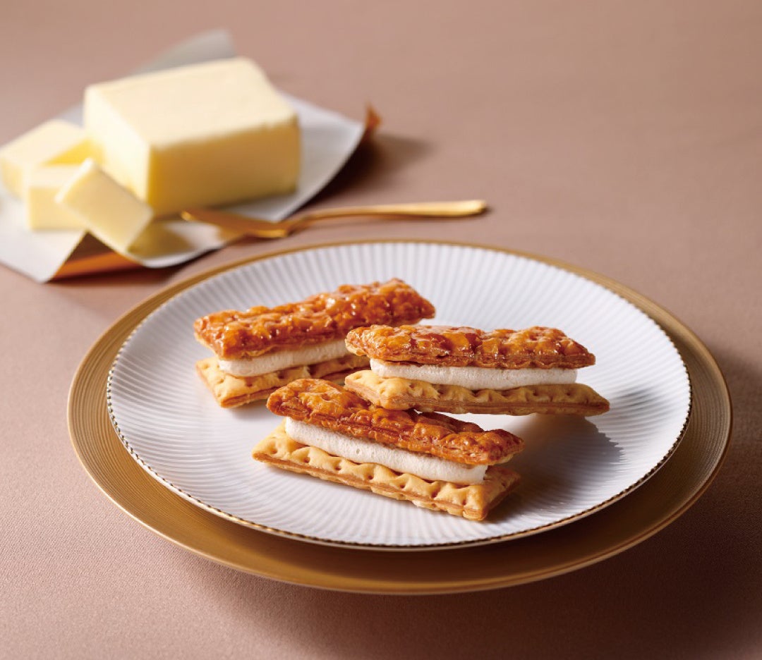黄金色に焼き上げたサクサクのパイでサンド。軽い食感の中にコクと香りが感じられる逸品です。