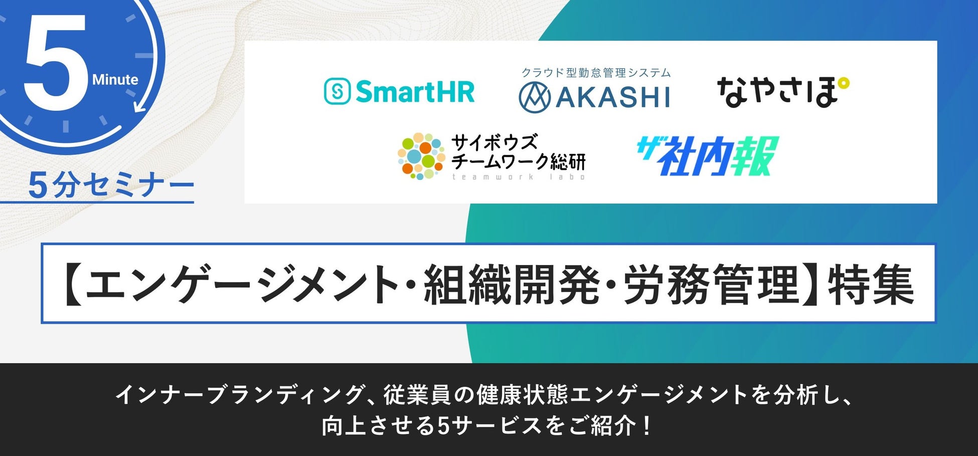 弊社では5分セミナー【エンゲージメント・組織開発・労務管理特集】において、インナーブランディング、従業員の健康状態エンゲージメントを分析し向上させる5サービスの1つとして、Web社内報構築に特化したサービス「ザ社内報」をご紹介。