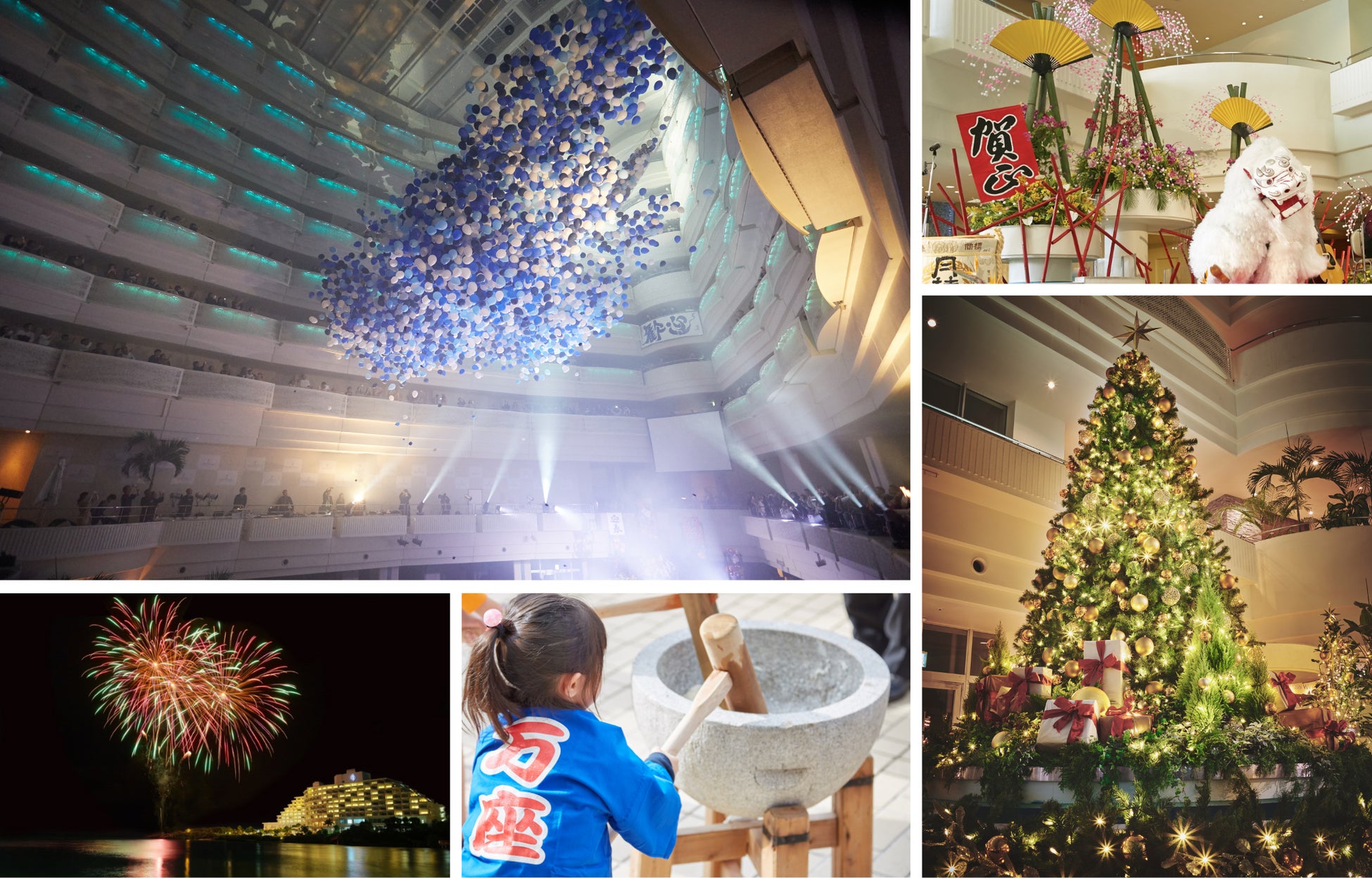 フェスティブシーズンの訪れとともに登場するのは、きらびやかなクリスマスツリー。リゾートの象徴である吹き抜けのアトリウム空間を華やかに彩ります。また、12月24日(火)、25日(水)にはリゾートにサンタクロースがやってくるほか、クリスマス・スペシャルライブなど、お子様から大人まで楽しめるイベントが盛りだくさんです。