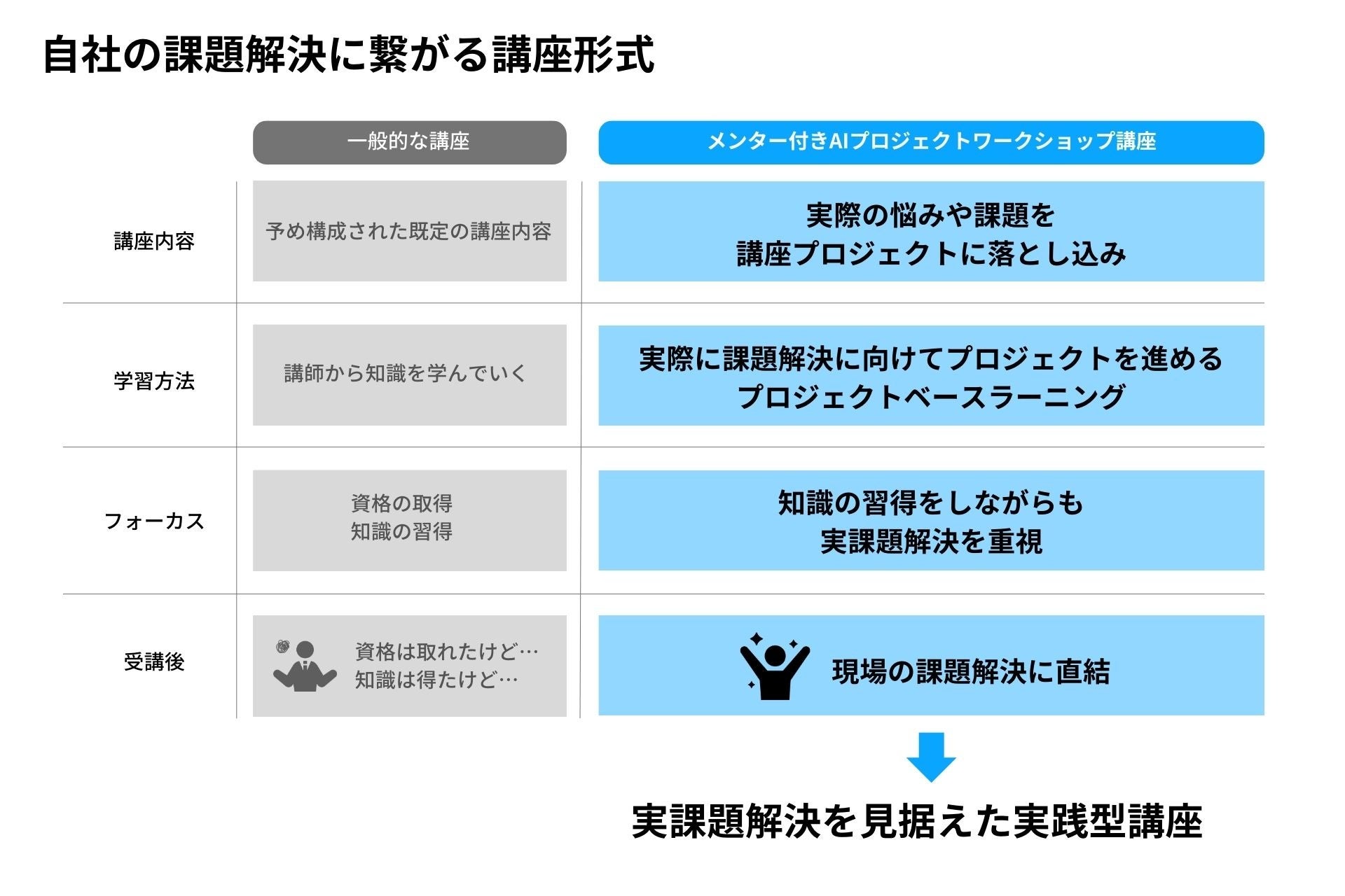 ①実際の課題や悩みを講座に落とし込むプロジェクトベースラーニングで実課題解決に直結