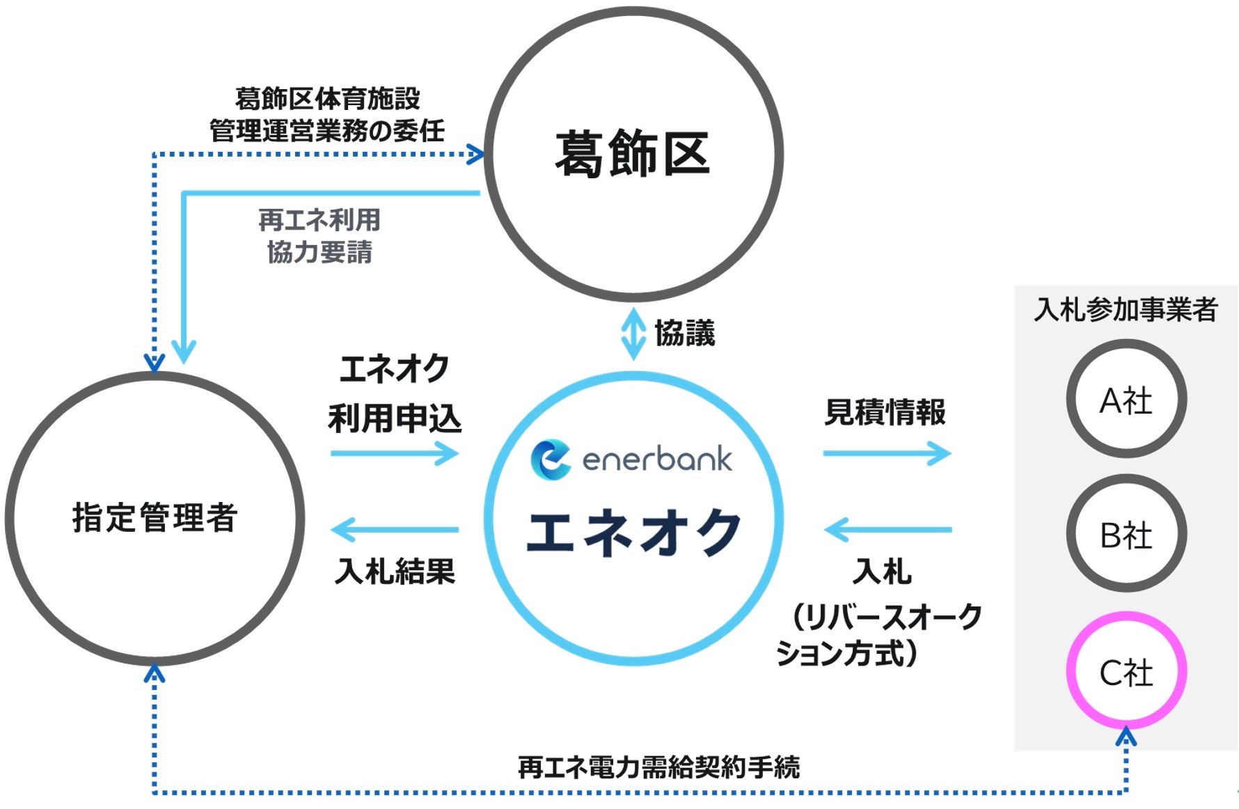 株式会社エナーバンク(共同創業者 代表取締役:村中 健⼀、本社:東京都中央区)は、東京都葛飾区(区長:青木 克德)が指定管理者に管理運営業務を委任している葛飾区体育施設の電力調達において、エネオクにより実質再エネ100%の電力の調達を支援しました。また、あわせて、東京都中央区においても東京都内自治体公共施設初として同時採用となっています。