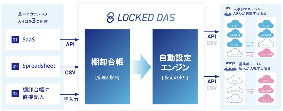図1:『LOCKED DAS』の「棚卸台帳」機能と「自動設定エンジン」機能の連携