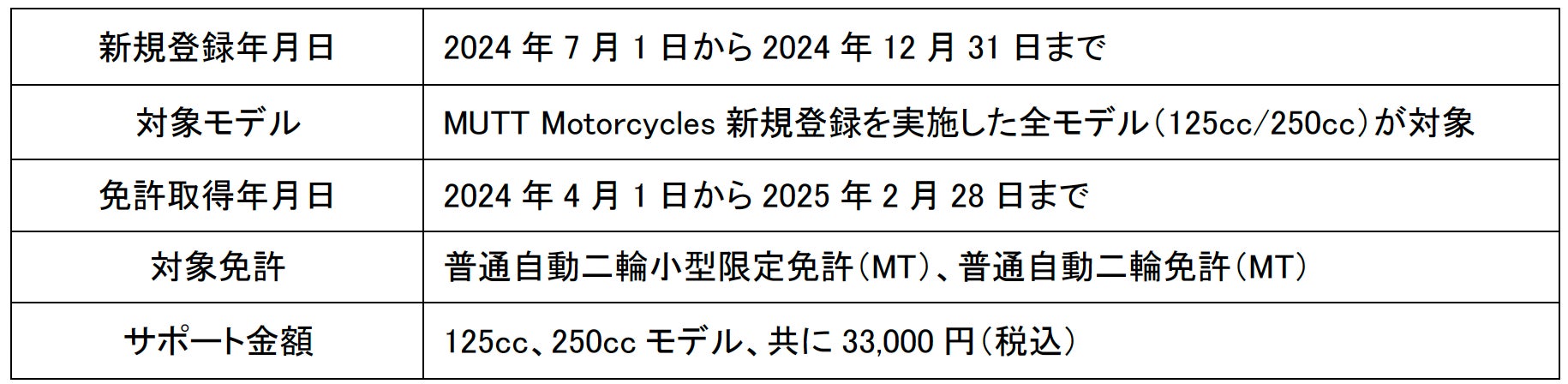 MUTT Motorcycles ライセンスサポートキャンペーン2024実施のご案内