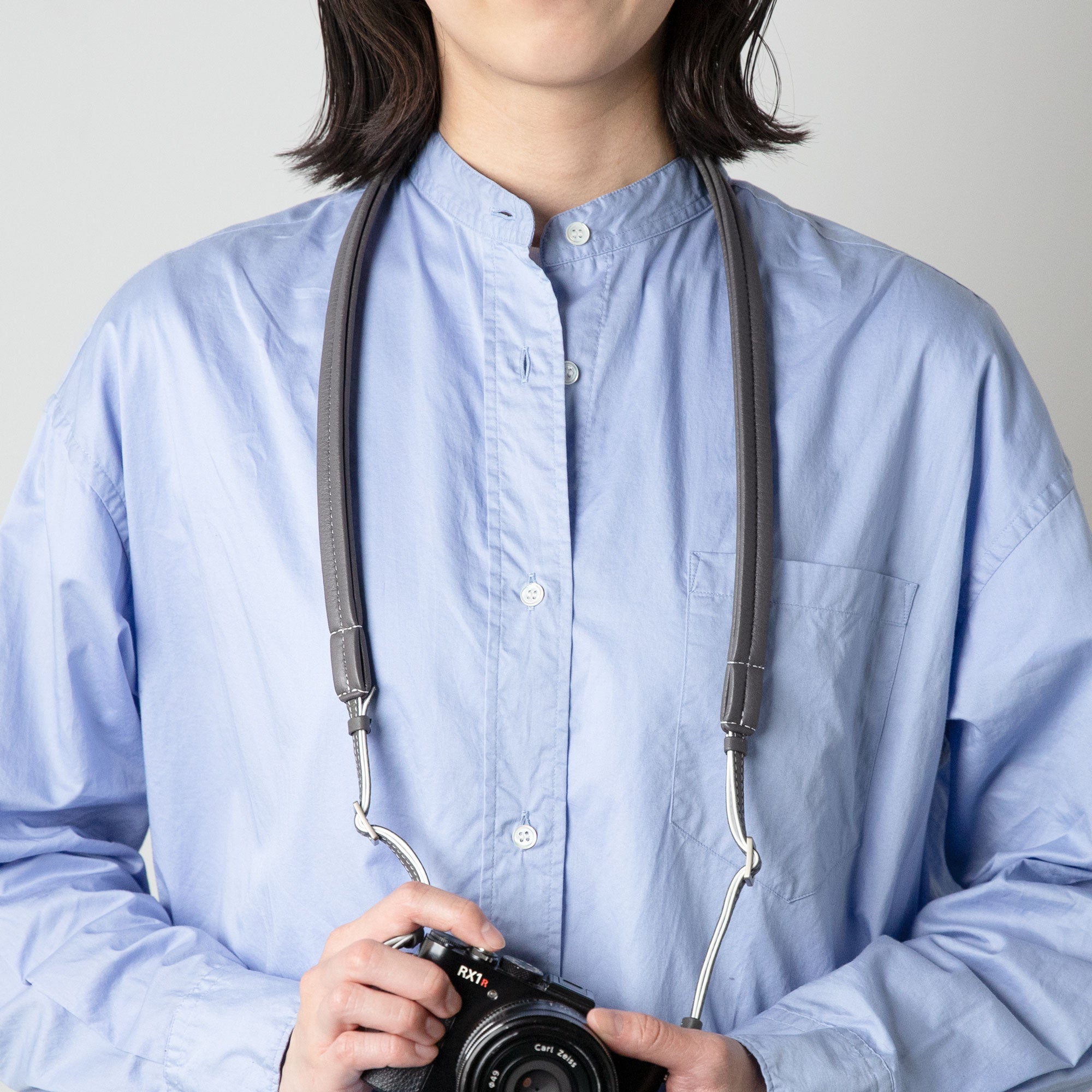 幅広い服装・シーンで使用できるように、不要な装飾を削ぎ落としたミニマルさとレザーの上質さを感じられる幅15mmの細身なカメラストラップ。屈曲に優れた弾力のあるスポンジ、柔らかな革の質感により、カメラを身につけた際に首や肩にかかる重みを和らげ、心理的なカメラの持ちやすさを実現。しなやかなストラップのため、結んで肩掛けしたり、手に巻き付けて手持ちしたりと、自由なカメラの持ち方を可能にします。