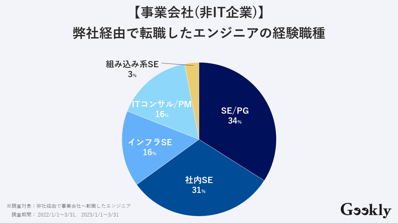 事業会社に転職したエンジニアの34%はSE/PGの経験者