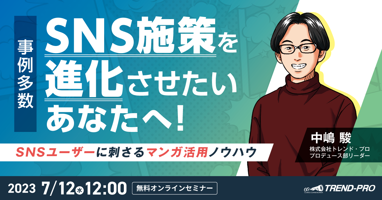 【事例多数】SNS施策を進化させたいあなたへ!SNSユーザーに刺さるマンガ活用ノウハウを伝えるオンラインセミナーを開催<7/12 12時〜>