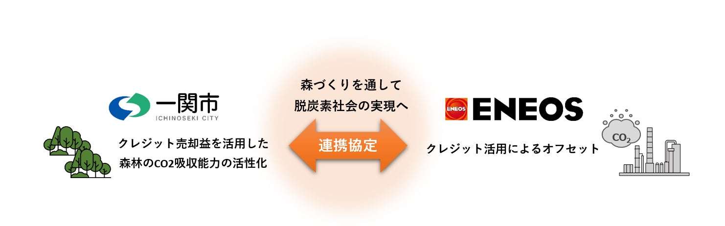 岩手県一関市(以下「一関市」)およびENEOS株式会社(以下「ENEOS」)は、一関市が2024年12月に実施した「一関市市有林を活用したJ-クレジット利活用連携パートナーの選定」に係る公募型プロポーザルにてENEOSの企画提案を同市が採択し、「一関市有林J-クレジット利活用による森林を活用した脱炭素社会の実現に向けた連携協定(以下「本協定」)」を本日締結しましたので、お知らせします。