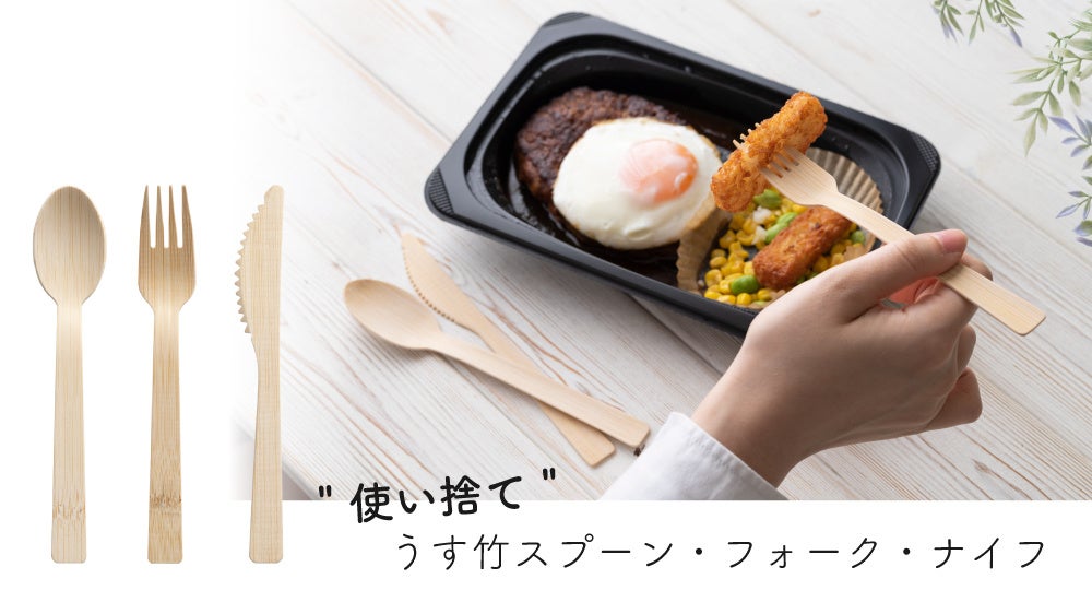 天然竹素材の使い捨て “うす竹カトラリ” が発売されます。