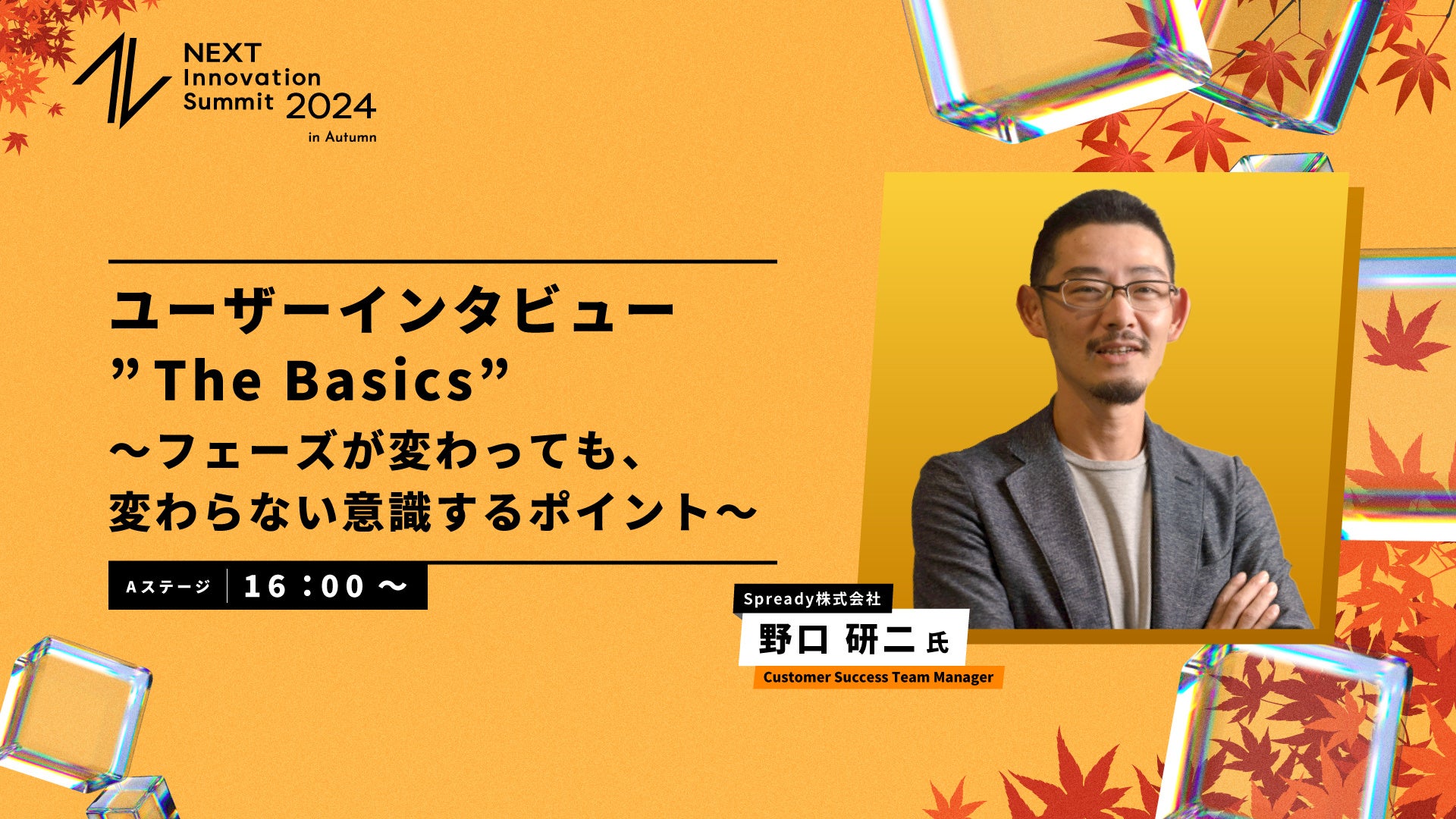 16:00〜16:45「ユーザーインタビュー ”The Basics” 〜フェーズが変わっても、変わらない意識するポイント〜」