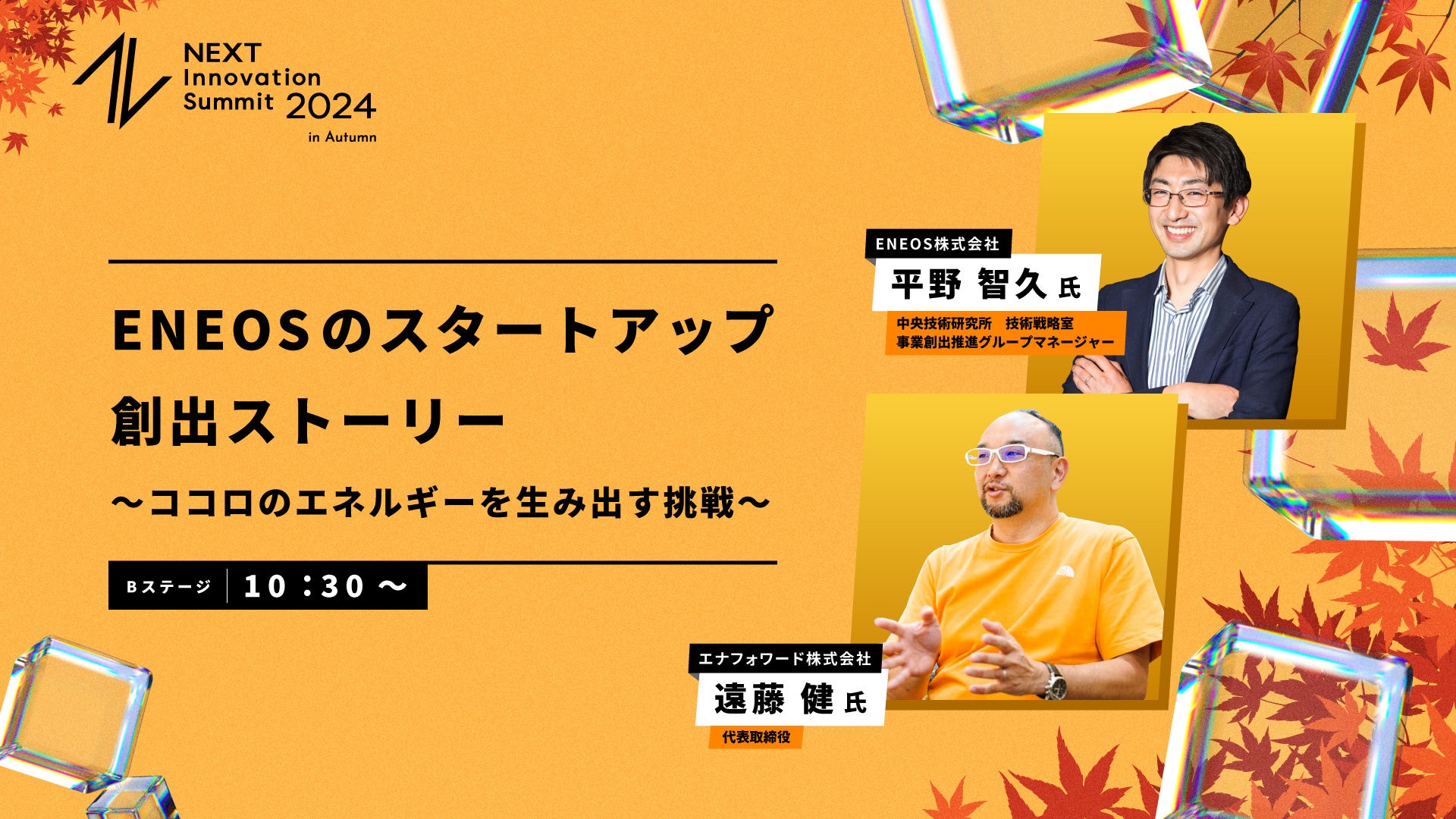 10:30〜11:15「ENEOSのスタートアップ創出ストーリー〜ココロのエネルギーを生み出す挑戦〜」