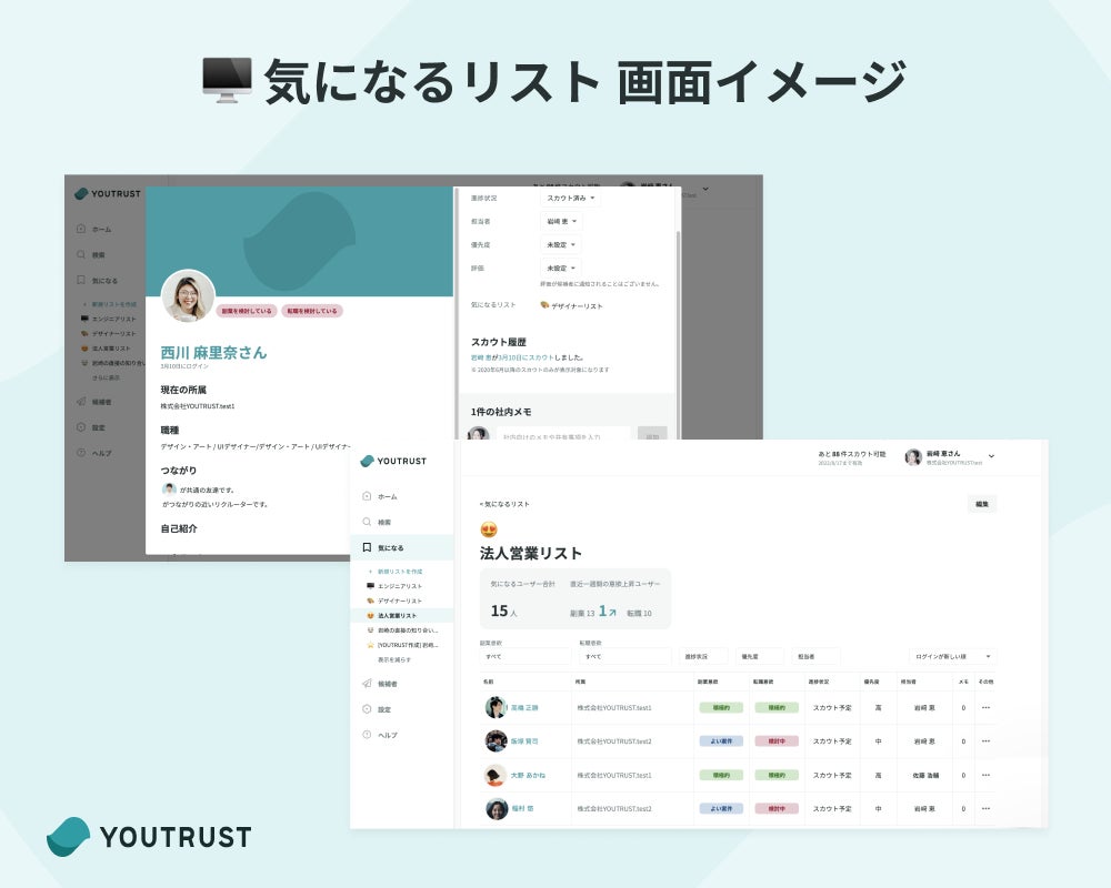 転職潜在層とのつながりを採用資産に変える。タレントプール機能「気になるリスト」をYOUTRUSTが法人向けに新たにリリース