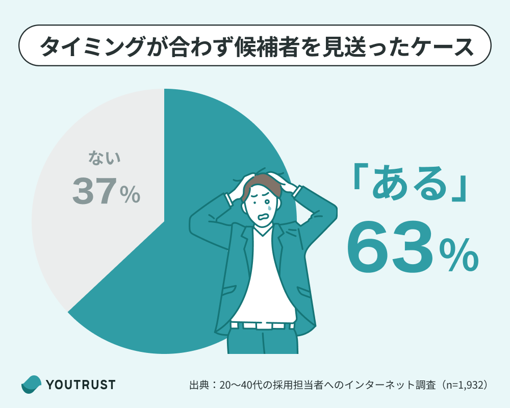 2人に1人以上の採用担当者が、「採用したいと思った候補者の転職意向がなく、採用できなかった経験がある」と答えており、候補者にアプローチするタイミングは非常に重要です。