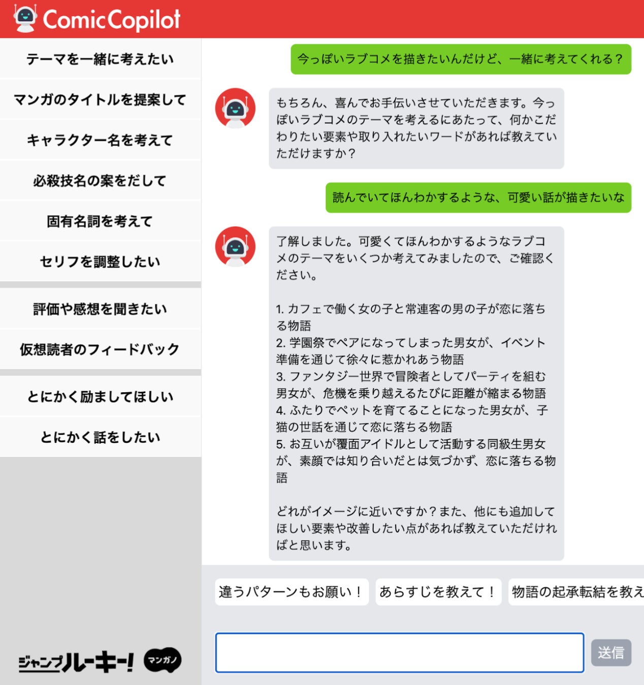 コミコパは集英社の編集者の皆さまにご意見を伺いながら、その知見やアイデアとAIを組み合わせて開発したサービスです。