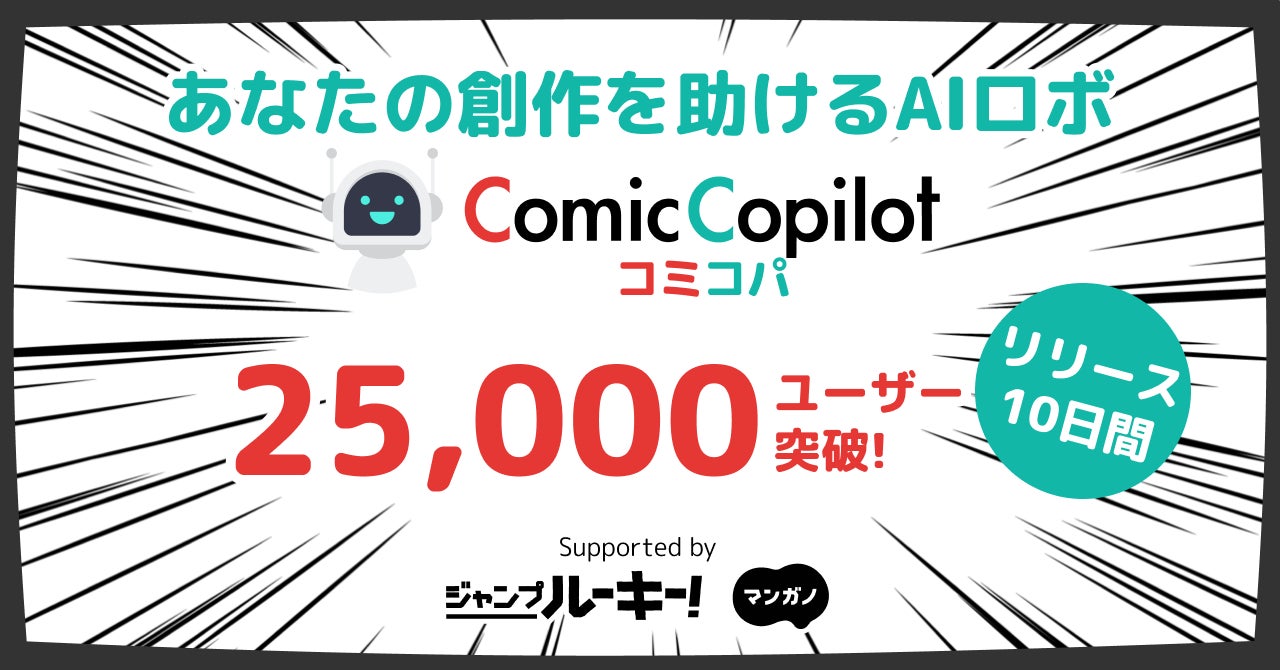 漫画制作サポートAIであるコミコパについて、リリースからわずか10日間で2万5000人以上にご利用いただくことができました。