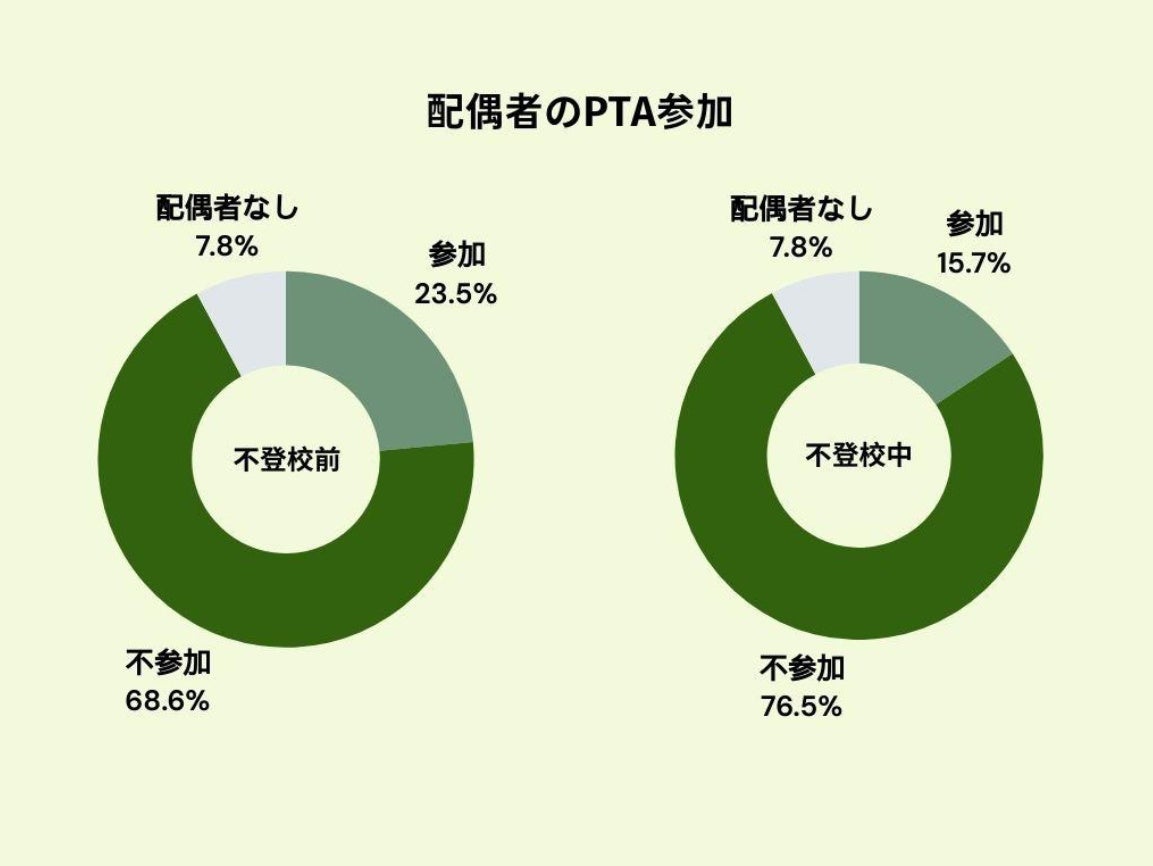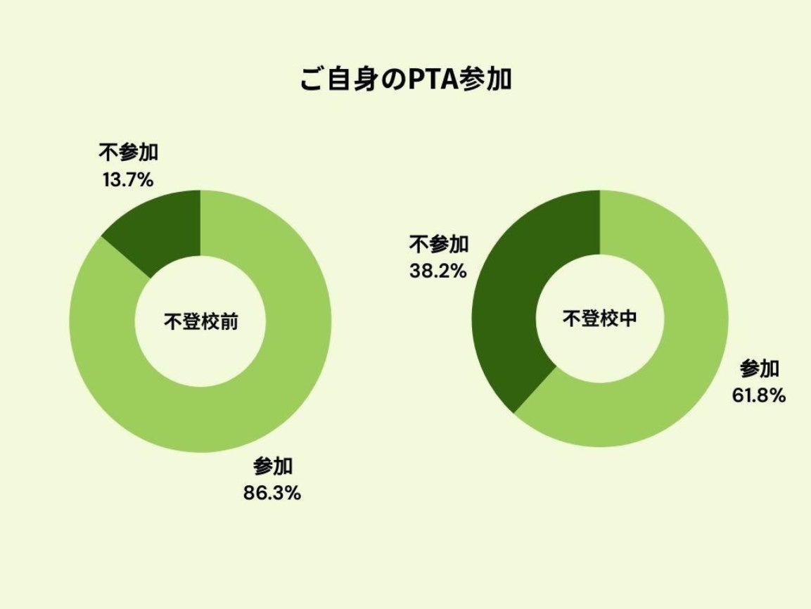 アンケート調査の結果、子どもが不登校になる前は、回答者の8割以上がPTA活動に参加していました。そして、子どもが不登校になった後でも、6割以上の保護者がPTAに参加していることが判明しました。