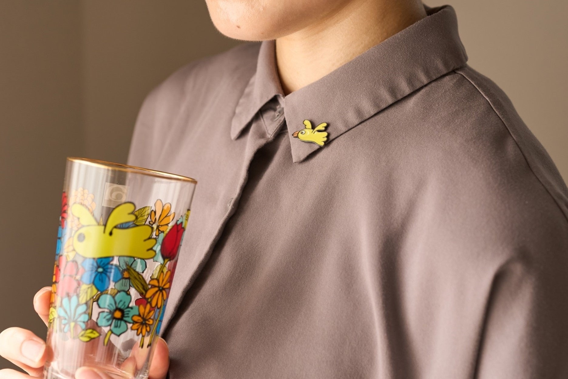 さらにアデリアレトロオフィシャルショップ限定で、トリピカルのグラスに描かれた脱力系の鳥さんをピンバッジに仕上げた「トリピカル ピンバッジ」(税込価格1,430円)を2024年9月11日(水)より順次発売いたします。