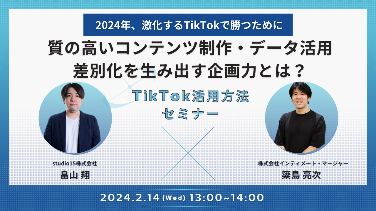セミナーではコンテンツ制作というクリエイティブの面と、データ分析・活用というサイエンスの両面からTikTokで競合に勝つための方法を解説していきます。