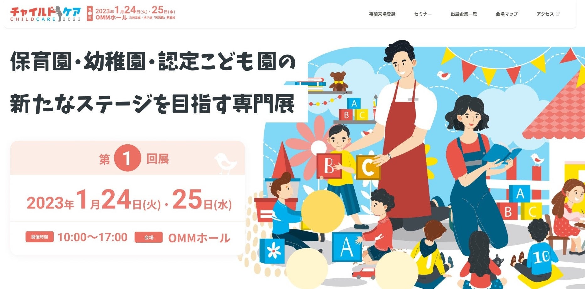 保育・教育現場のサービス向上や、働きやすい環境づくりなど、現場の生産性向上に繋がる製品やサービスの紹介 商談が出来る展示見本市。1/24(火)、1/25(水)OMMホール にて開催いたします。