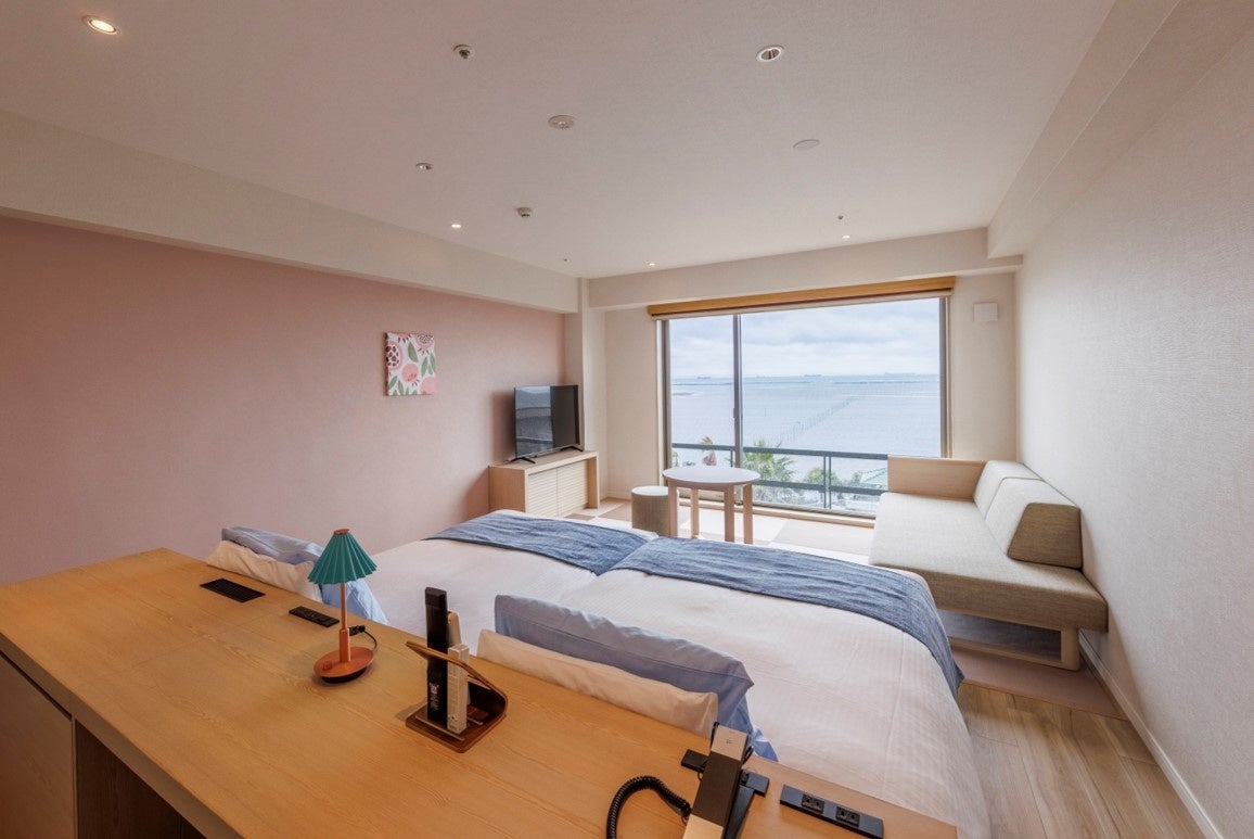 リゾートルームは優しい色合いベースとした明るい清潔感の客室でリゾート感あるれるオーシャンビューで心安らぐ旅の時間を演出。