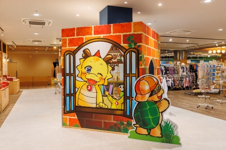 また三日月公式キャラクターミカゴングッズも勢揃い。ミカゴンの顔出しパネルのフォトスポットもあり楽しい空間となっております。
