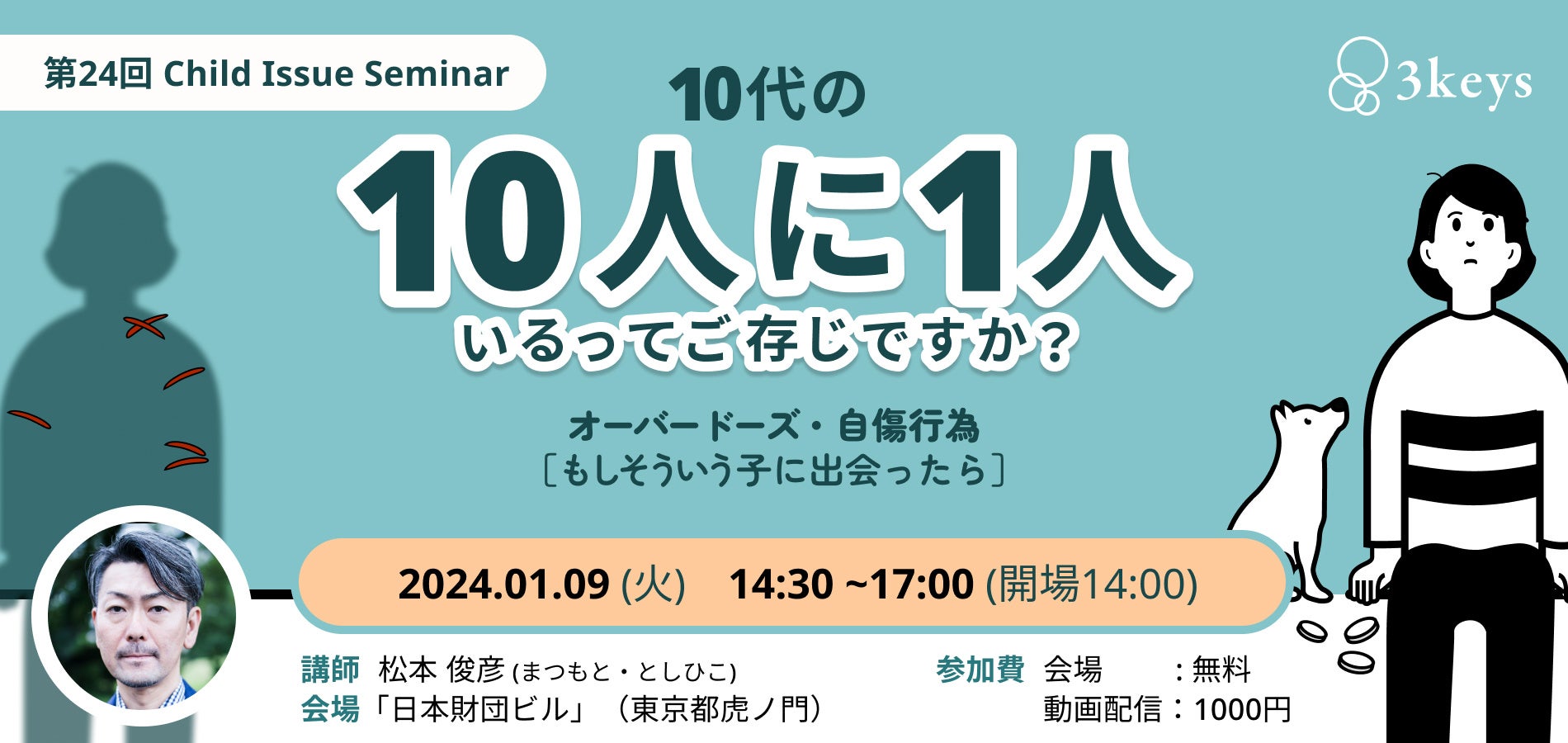 生まれ育った環境によらず子どもたちの権利保障を目指す認定NPO法人3keys(東京都新宿区、代表理事:森山誉恵、以下3keys)は、思春期世代の専門家による連続講座を販売開始します。周りの大人との関わり方や、オーバードーズ・自傷行為・不登校など、社会課題となっている事象をテーマに、いまどきの10代の子どもたちの特性や本質について解説します。