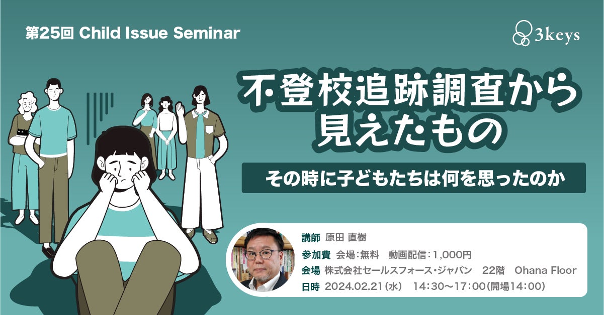 3keysでは、2023年3月から2024年2月にかけて3回にわたり、子どもの心のケアに精通した専門家を招き、思春期世代の特性や本質を理解するためのセミナーを開催しました。参加いただいた方からの反響も大きく、アーカイブ動画視聴へのご要望も多かったことから、このたびシリーズとして編集版の動画を販売させていただく運びとなりました。この動画を通じて、思春期の子どもへの正しい理解が進み、支援の輪が広がっていくことを期待しています。