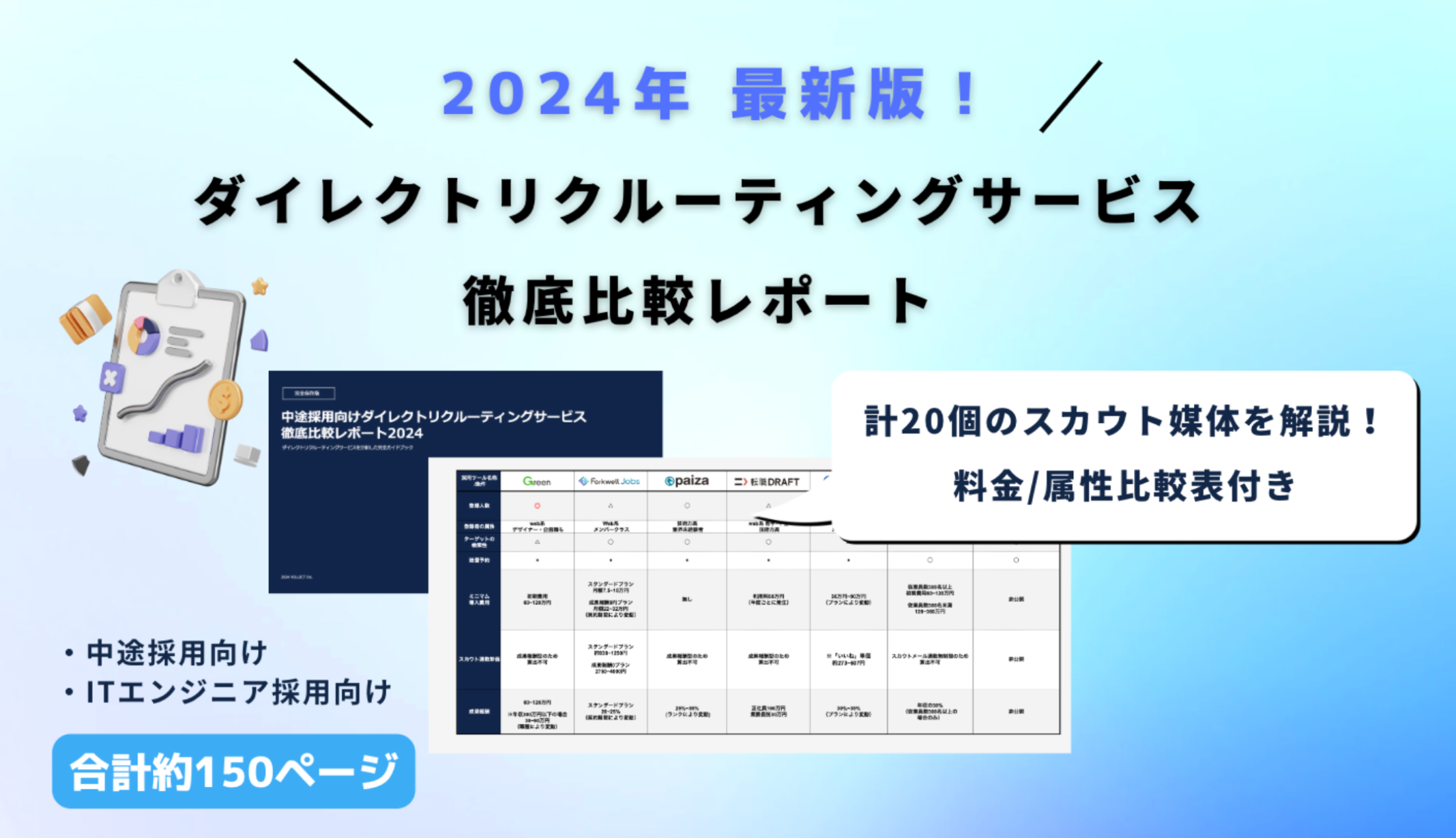 「ダイレクトリクルーティングサービス徹底比較レポート2024」 中途採用向け・ITエンジニア採用向けの2種を無償公開 |計150ページ