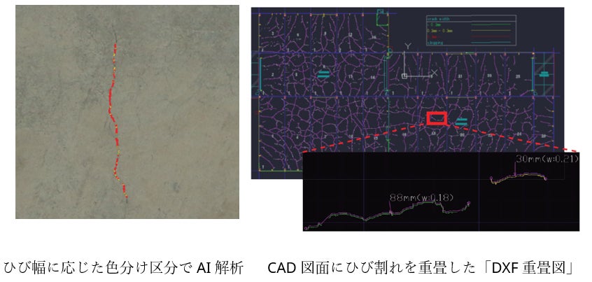 DXF重畳図、PDFひび長さ表示、ひび集計表もオプションで対応可能