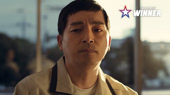 仕事の休憩中、車の中でJリーグの試合を見ていた河本さんに対し、「いるわー代表戦のあと、急にJリーグ見始めるやつ!」と噛みつく井口さん。ウエストランドさんらしいやり取りからCMが始まります。突然、「当たった!」と声を上げる河本さんに、WINNERを知らない井口さんは、「当たった、って何だよ。」と尋ねます。すると「3口600円で買ってオッズが8倍だから…。」と、ニヤケ顔で見つめる河本さんの表情に注目です。