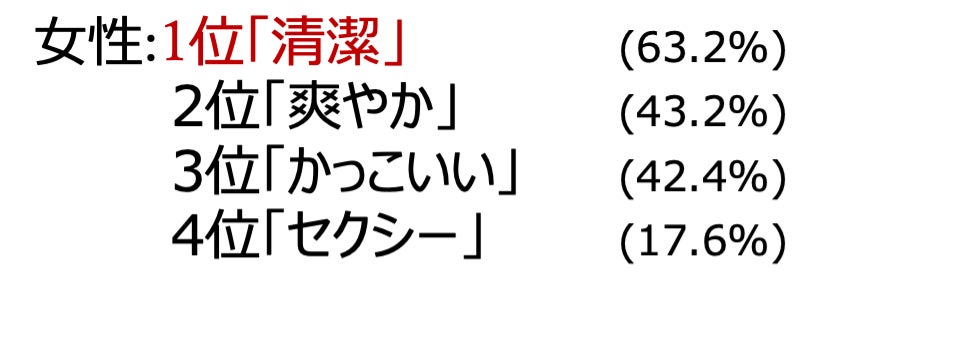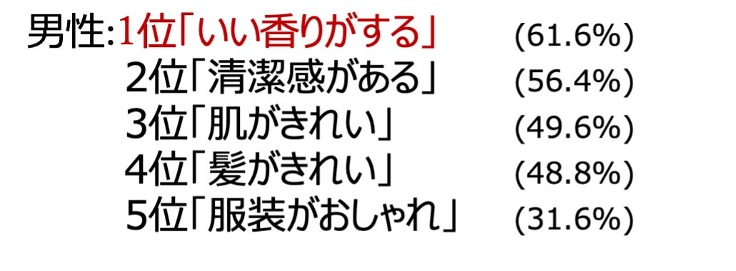 異性からいい香りがした時に抱く印象は、男女ともに、「清潔」が1位