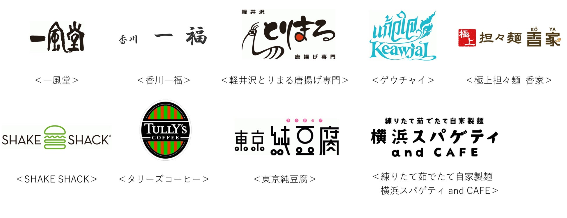 廃食用油提供に協力するみなとみらい東急スクエアの飲食店舗9店舗(※五十音順に記載)