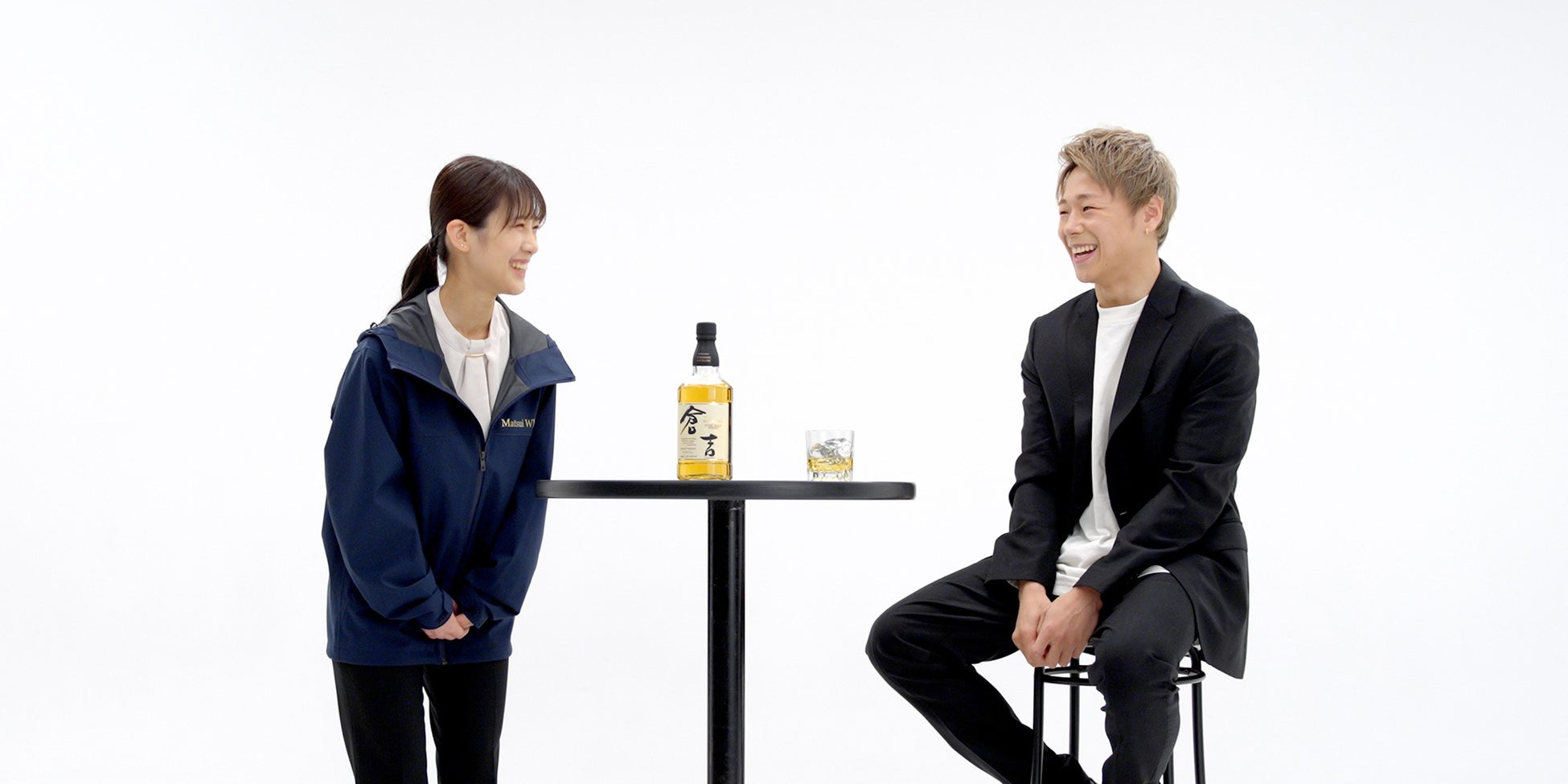武尊選手に「ピュアモルトウイスキー倉吉」の風味を知っていただく為に、あえて事前に情報はお伝えせず臨んだ撮影。