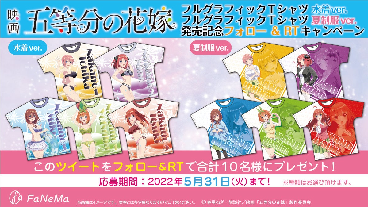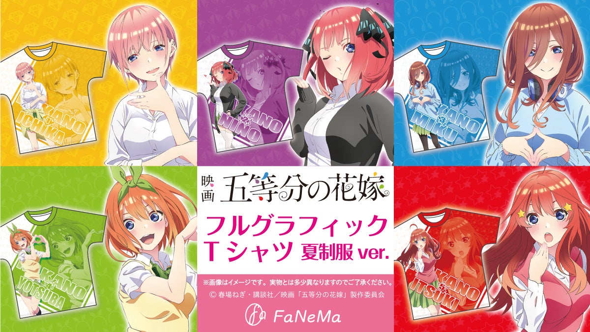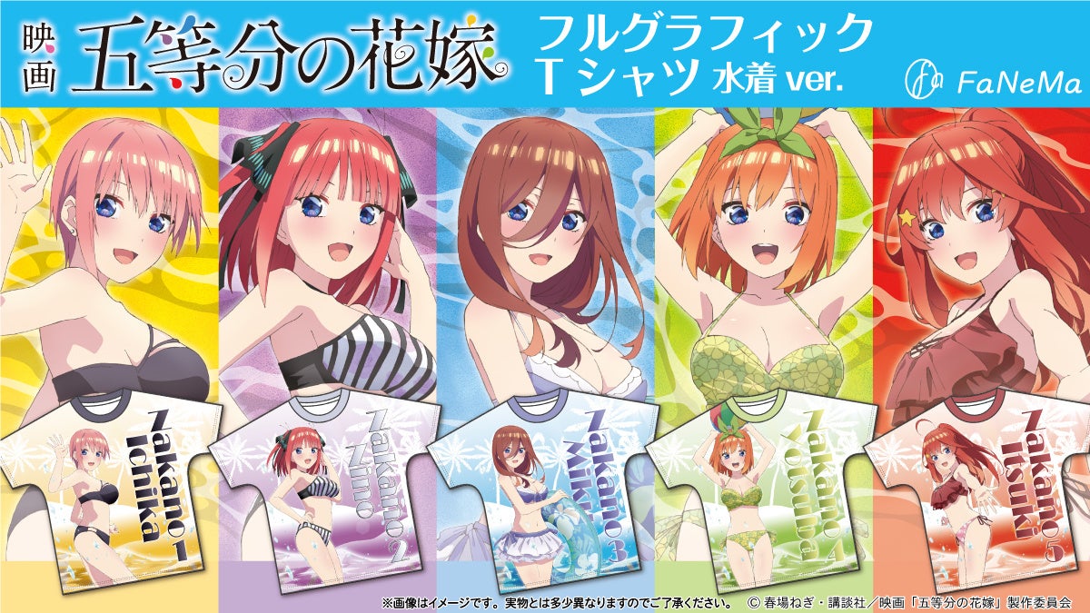 アニメ『映画「五等分の花嫁」』より水着姿と夏制服姿の「フルグラフィックTシャツ」が登場!「FaNeMa」にて受注開始!発売記念キャンペーンも開催!