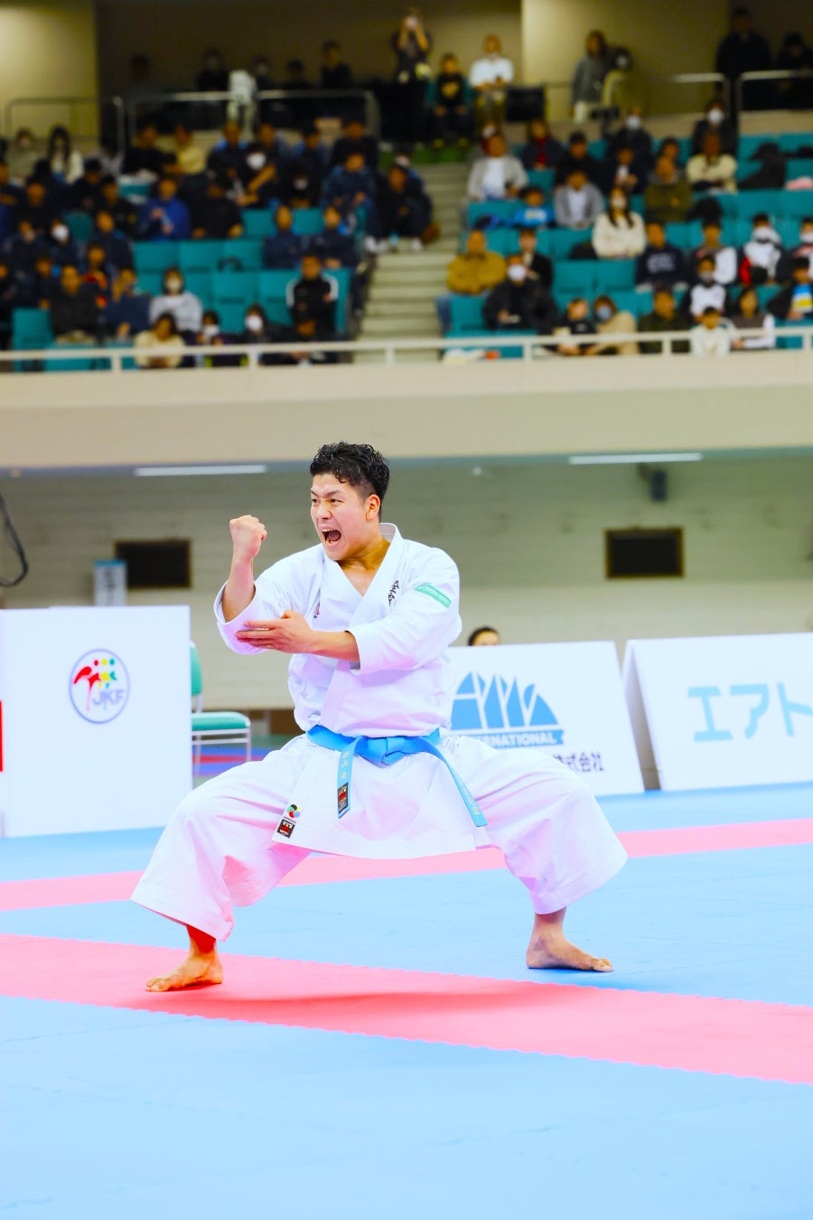 今大会では、有力視されていた本一将(全空連推薦)、本龍二(実業団)、池田竜晟(劉衛流龍鳳館)が同じグループで競うなど、序盤から波乱の展開に。そんな中、決勝に進出したのは、国内外で今年負けなし、本大会2連覇中で世界空手連盟(WKF)世界ランク1位の西山走。対戦相手は一昨年に決勝戦で西山と対戦した本一将です。