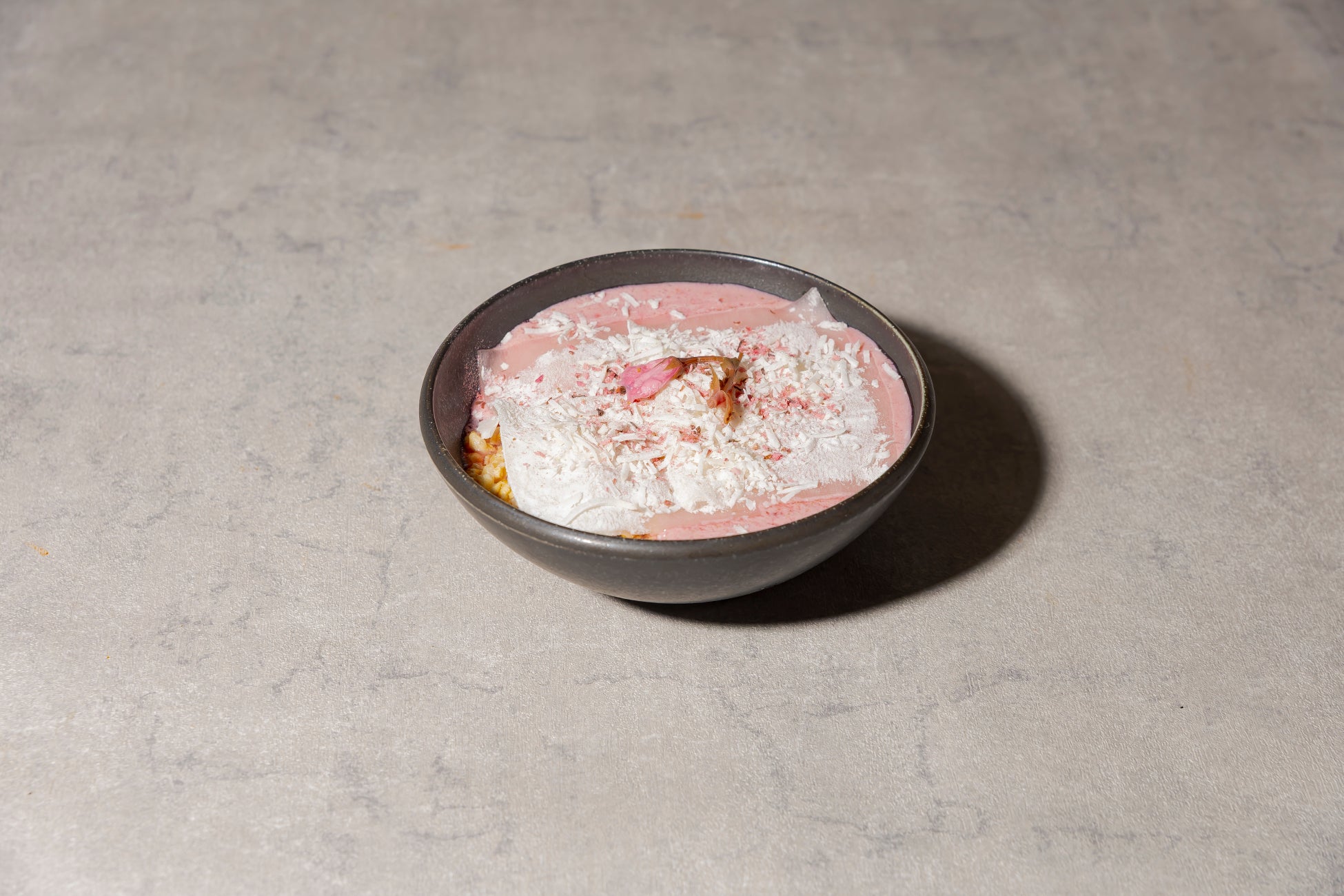トッピングには、花びらを思わせるさくらフレークとドライココナッツを使用。自然光の下で映えるホワイトピンクの色合いは、青山の街並みにそっと春の風を運ぶ仕上がりです。