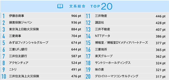 【就職希望企業人気ランキング結果|文系総合】