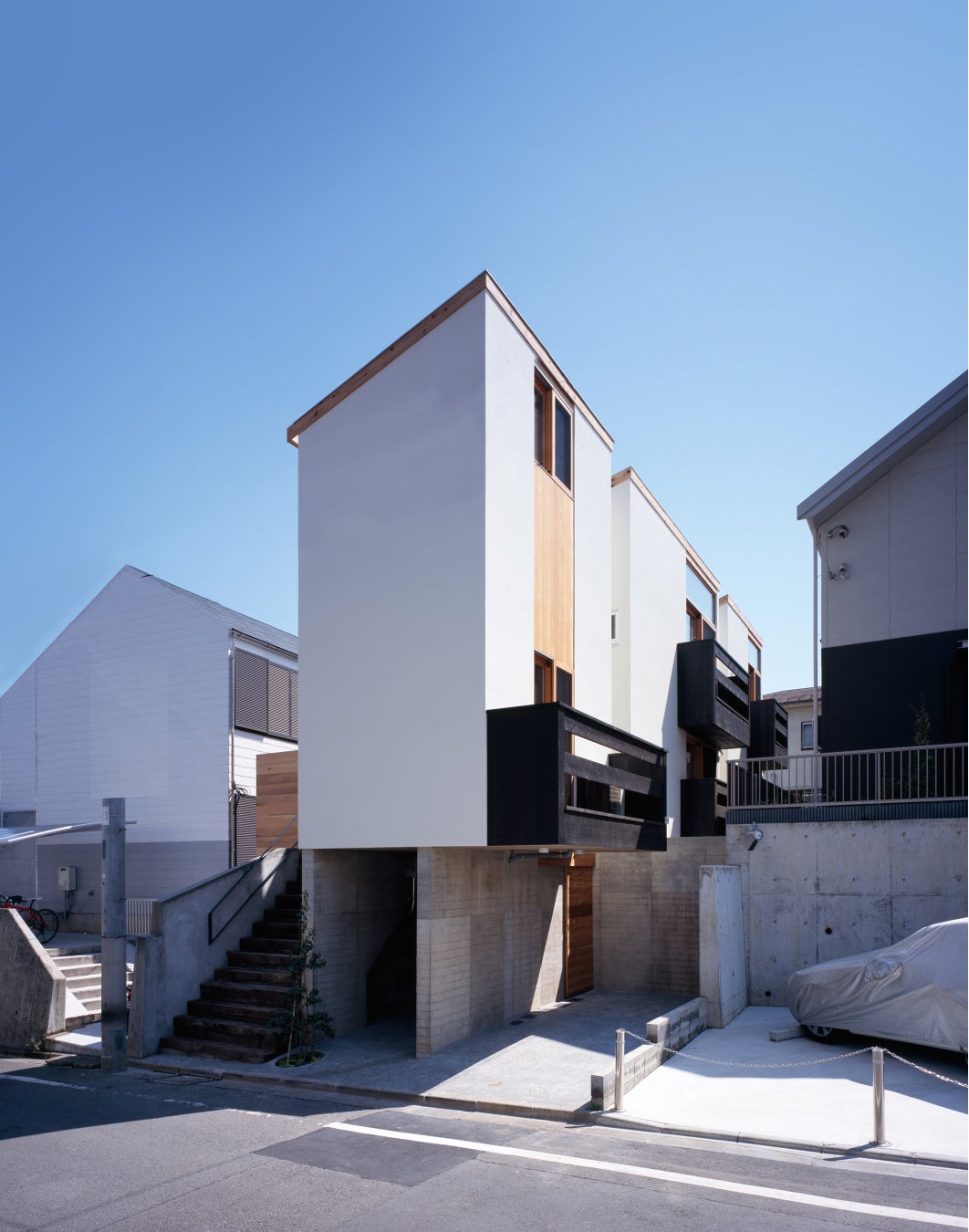 核家族を想定したnLDKの限界を批評し、単純な木造ワンルームとは異なる形で、単身者向けの住宅を提案しようとする意欲作である。ひとつの建物を3つの棟に分け、棟と棟の間に専用階段を設けることで、プライバシーを確保し、周辺の家並みと馴染ませながら、新たな住み方・住環境を生み出していることに評価が集まった。平均地盤面を調整しながら容積率緩和を活用して最大ボリュームを確保した点、内部階段と外部階段を巧みに使い分けながら専用面積を調整した点など、事業性を確保するためのアイデアをふんだんに盛り込むことにより、個別解にとどまらない単身者住宅の事例を生み出そうとする姿勢が、さらに評価を高めたように思う。