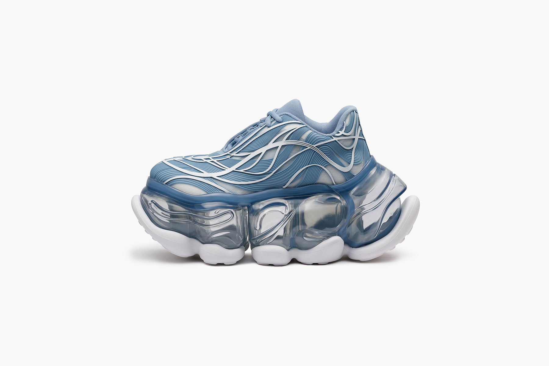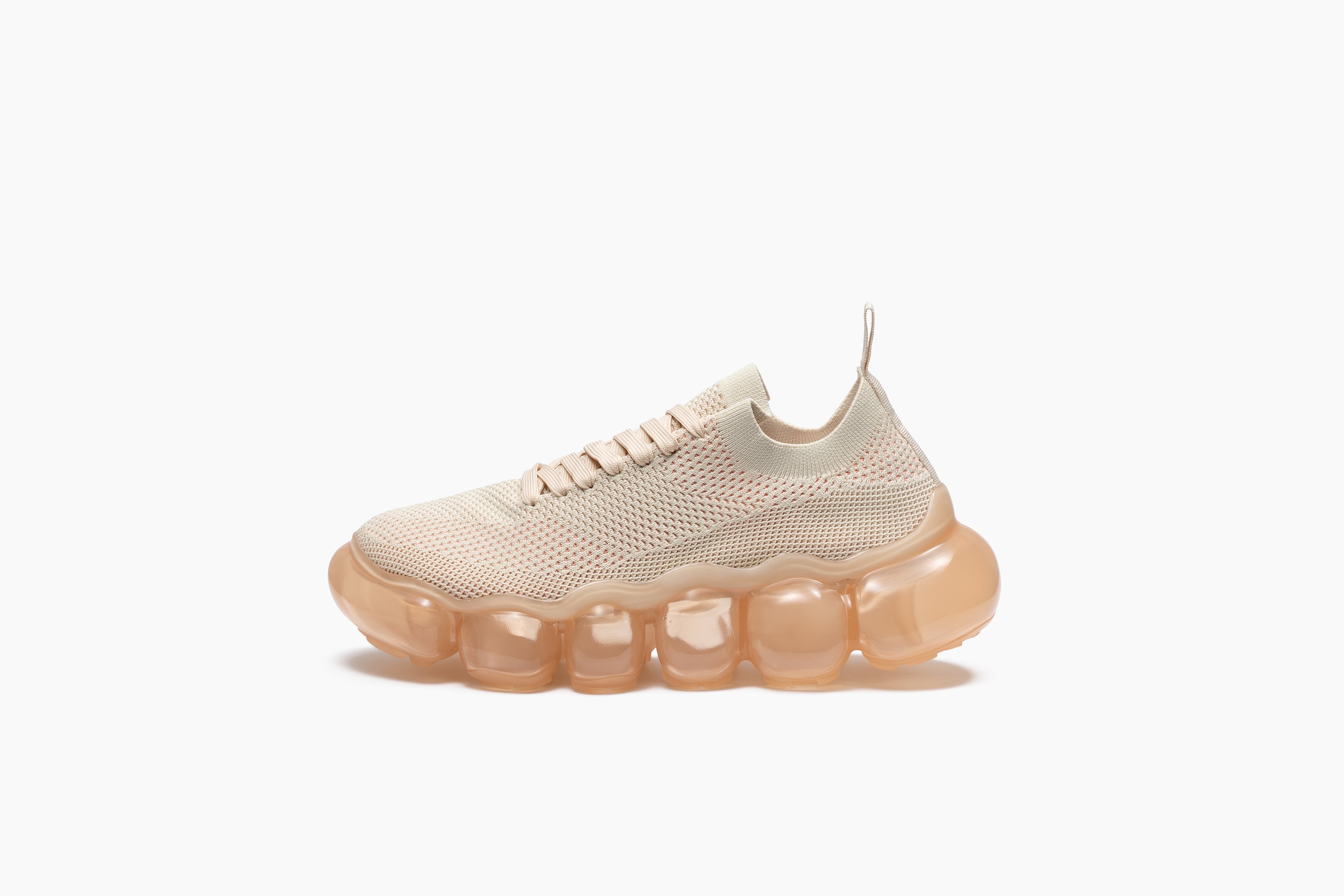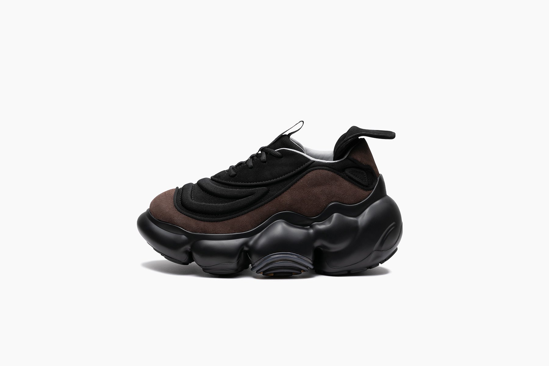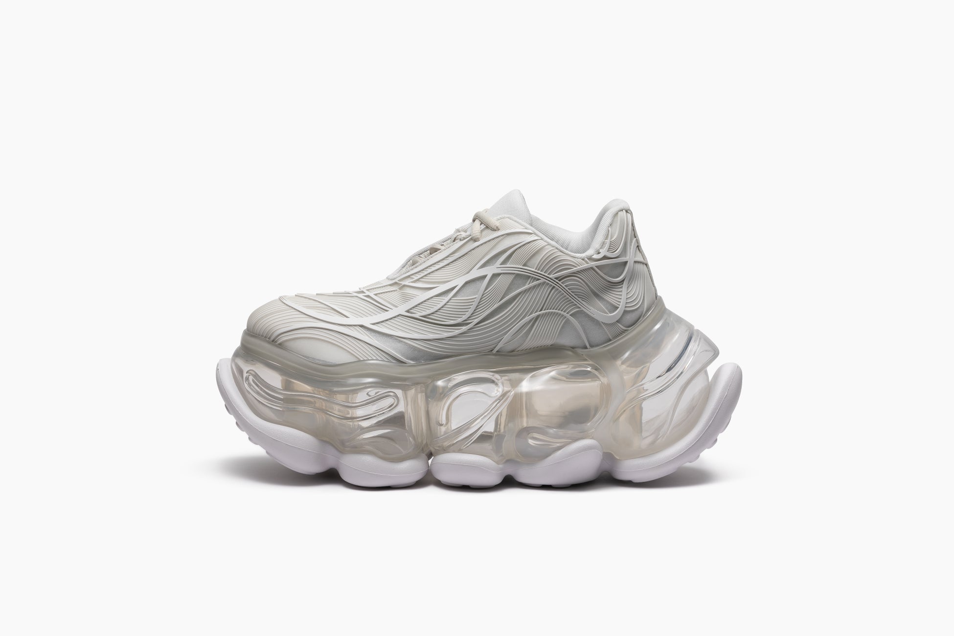 セピア調のトーンに包まれた今季のコレクションは、靴を単なる構造やスタイルではなく、「記憶」を宿すものとして再解釈しました。ホワイト、グレー、ヌードやイエローなどを基調としたカラーパレットは、ミニマルでありながらも、60sから70sの時代に感じられる繊細なノスタルジーを表現していて、プラットフォームシューズに宿る文化的な記憶を蘇らせます。