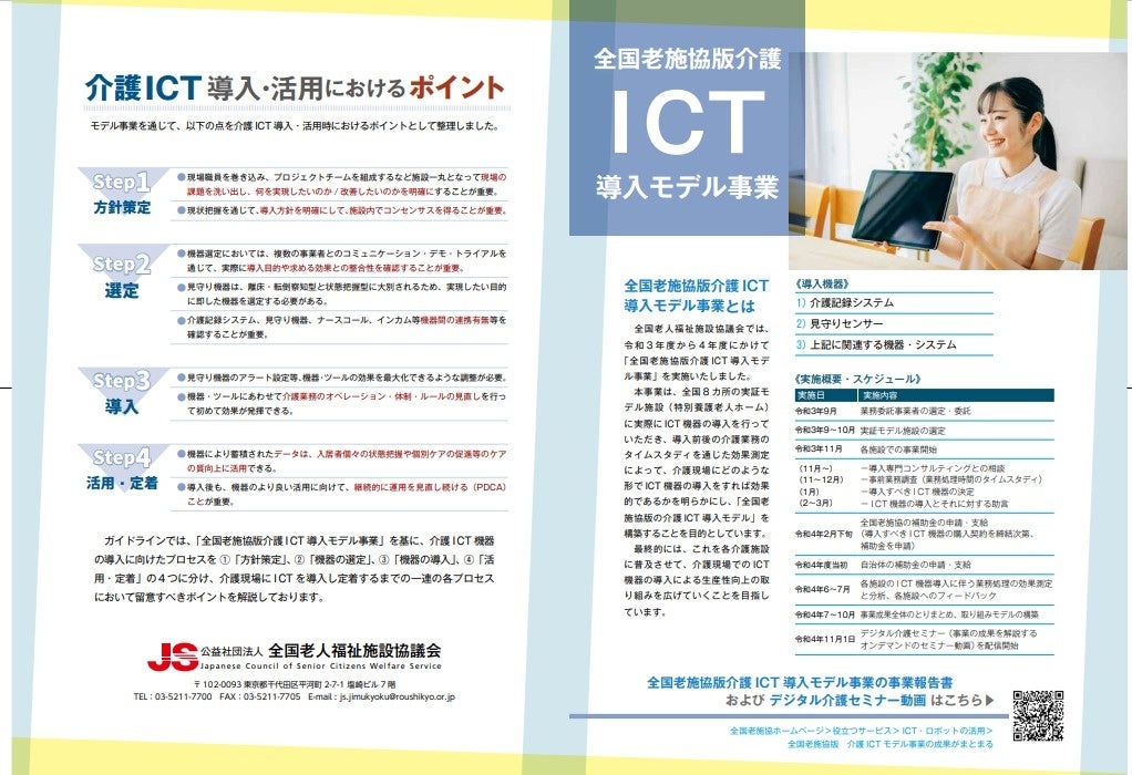 全国老施協版介護ICT導入モデル事業にて、介護現場のための介護ロボット・ICT導入に関するガイドライン・パンフレットを配布