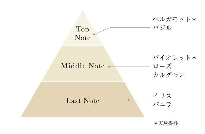 - 上品でみずみずしく、明るい春の訪れを感じさせるふんわりとした優しさのある香り。