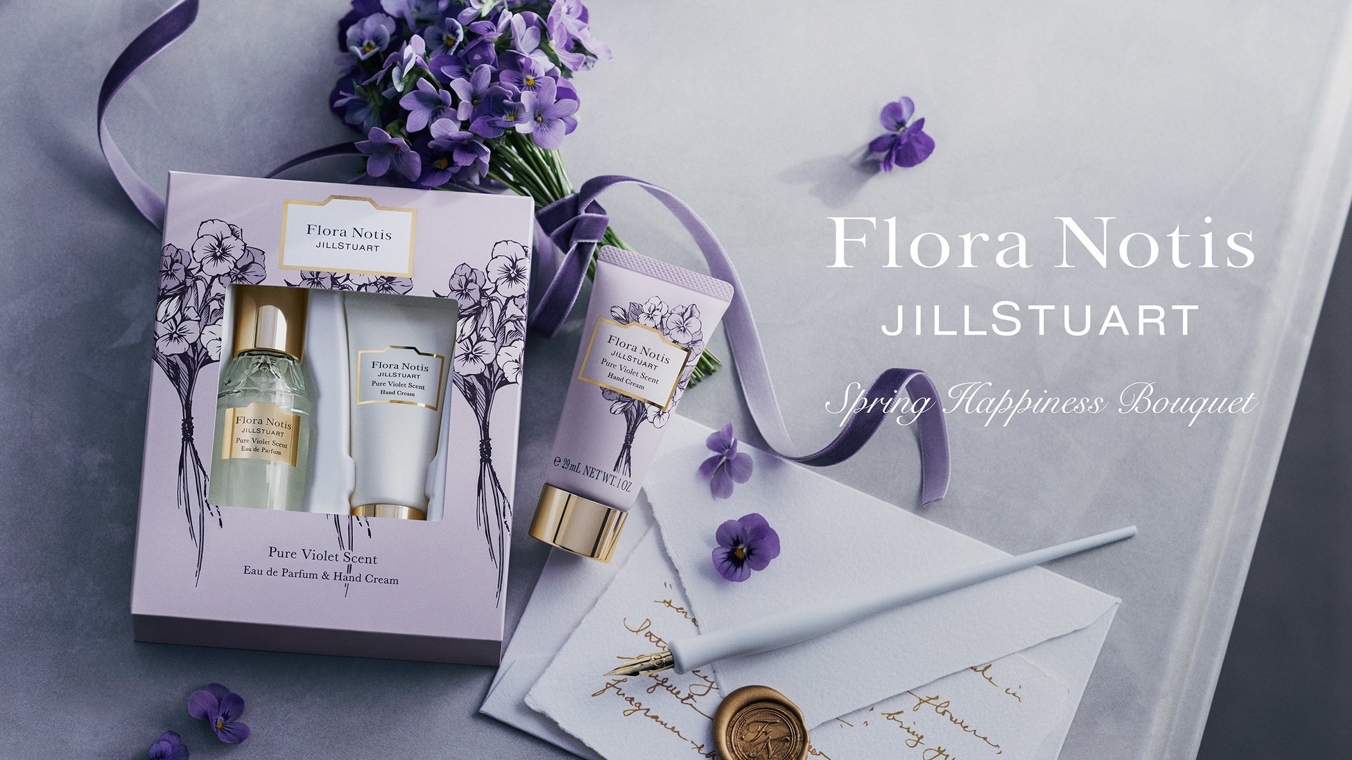 【フローラノーティス ジルスチュアート】大切な方へ“小さな幸せ”を贈る、特別なギフト。春の訪れを感じさせる、『スミレ』を束ねたブーケのようなアイテムを限定発売。